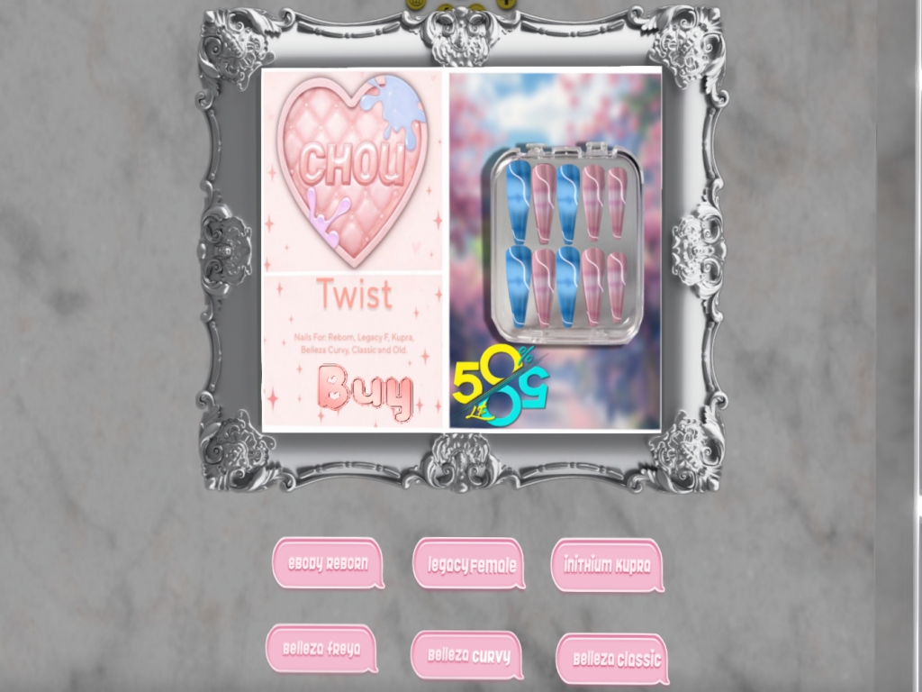 Featuring: Accessories, Animations/Poses/Props, Avatar Components, Builds, Clothing, Cosmetics/Nails, Footwear, Hairs, Home and Garden, Textures