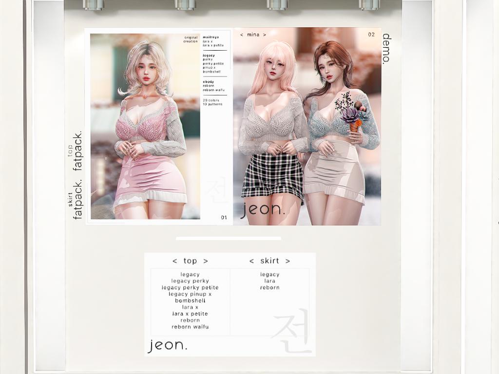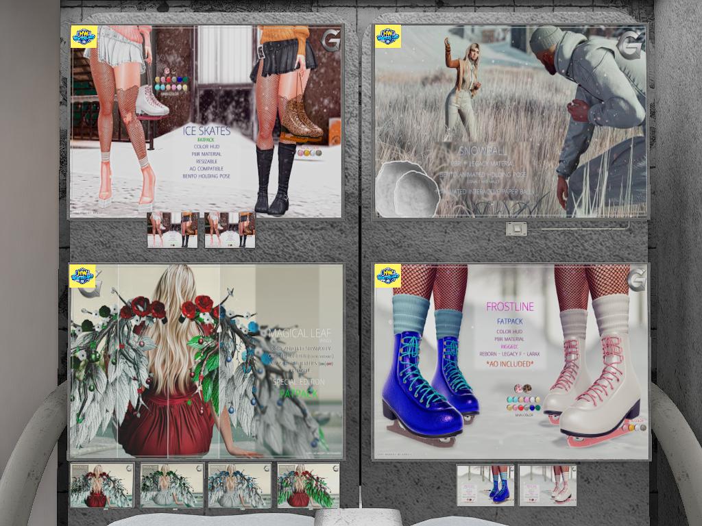 Featuring: Accessories, Animations/Poses/Props, Avatar Components, Avatar Enhancements, Builds, Clothing, Cosmetics/Nails, Footwear, Hairs, Home and Garden, HUDs, Shapes, Skins, Vehicles