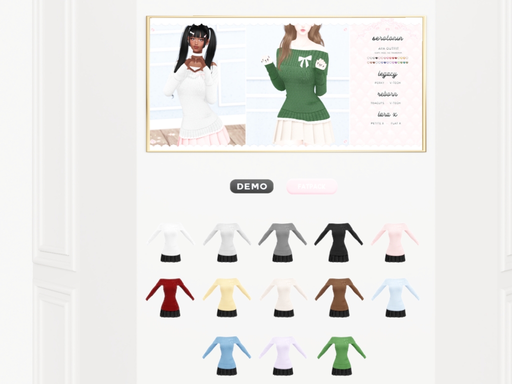 Featuring: Accessories, Animals/Pets/Companions, Avatar Components, Avatar Enhancements, Builds, Clothing, Cosmetics/Nails, Footwear, Hairs, Home and Garden, Shapes, Skins, Tattoos, Tools