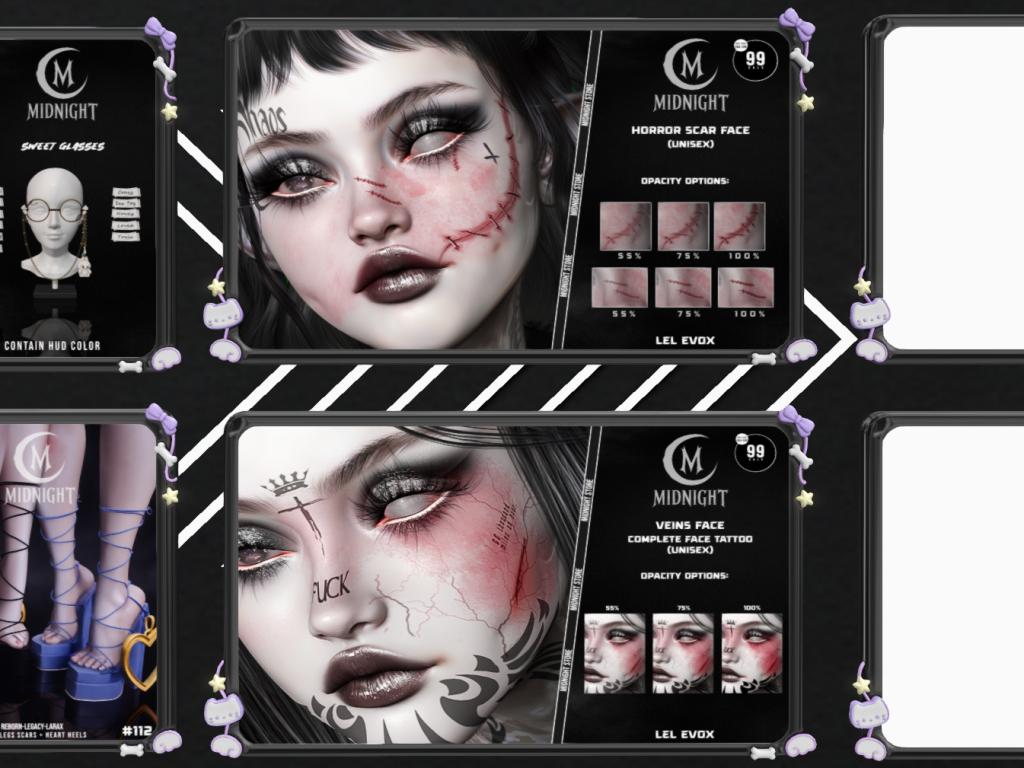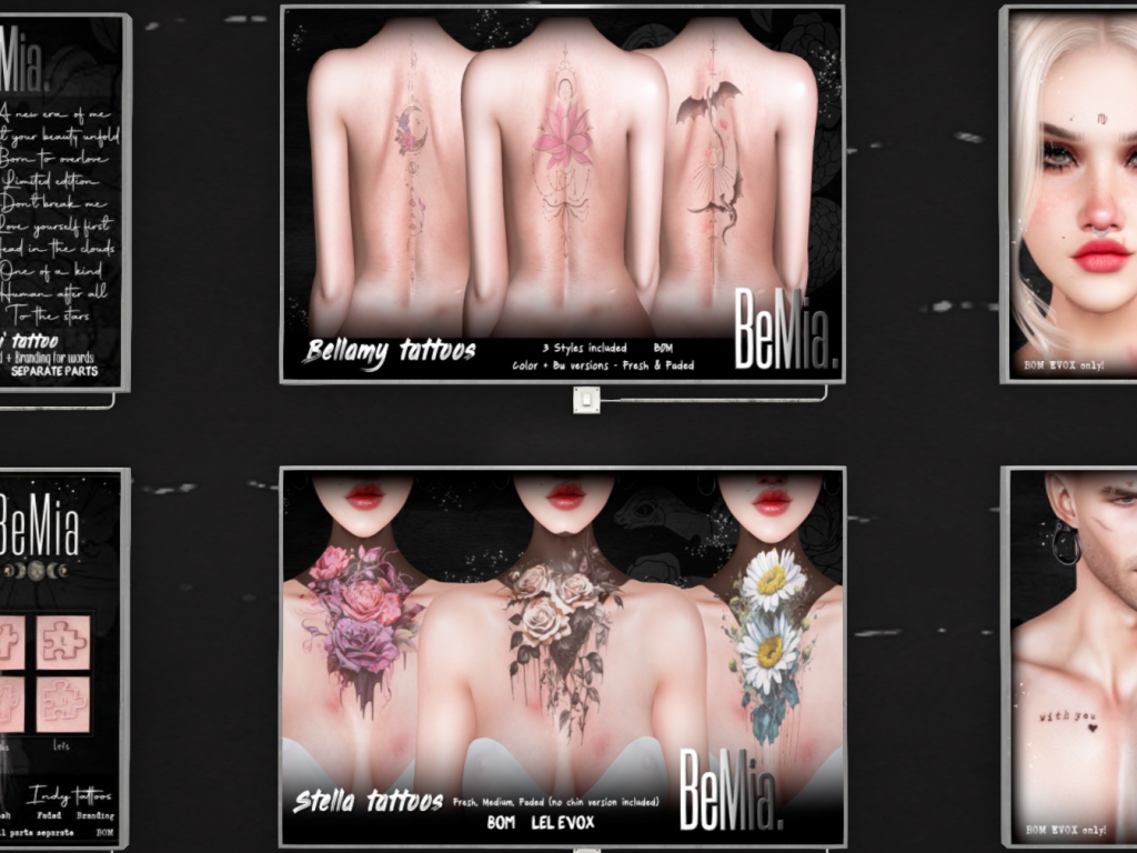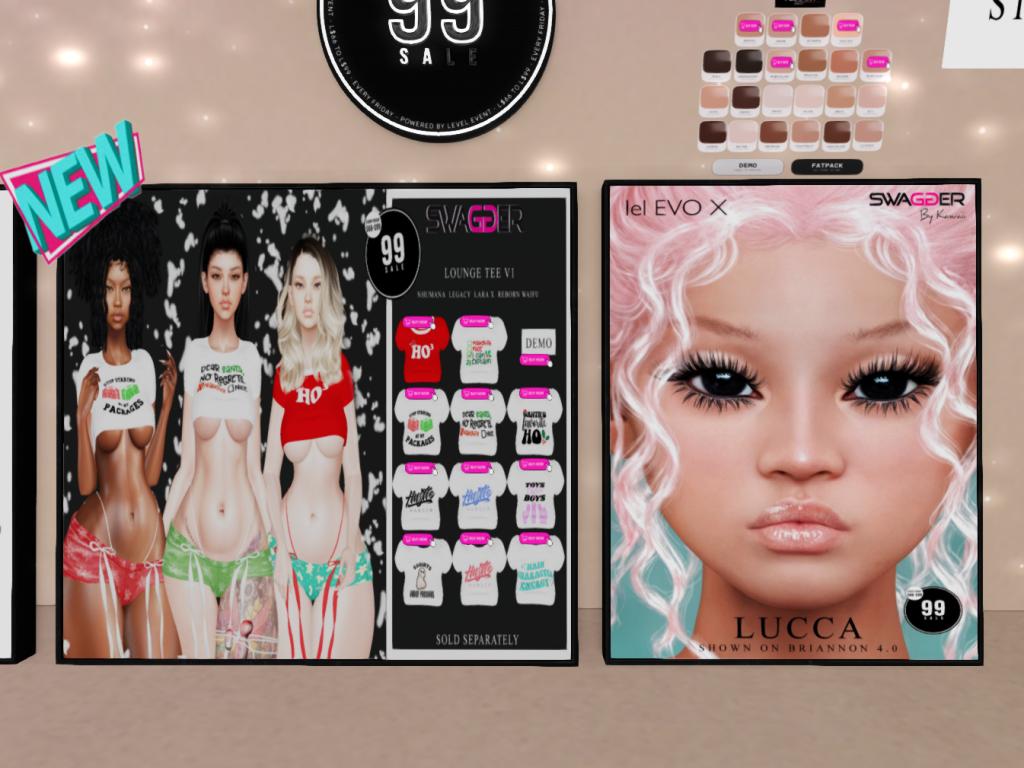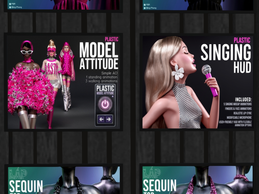 Featuring: Accessories, Animations/Poses/Props, Avatar Components, Avatar Enhancements, Clothing, Cosmetics/Nails, Footwear, Home and Garden, Skins, Tattoos, Vehicles