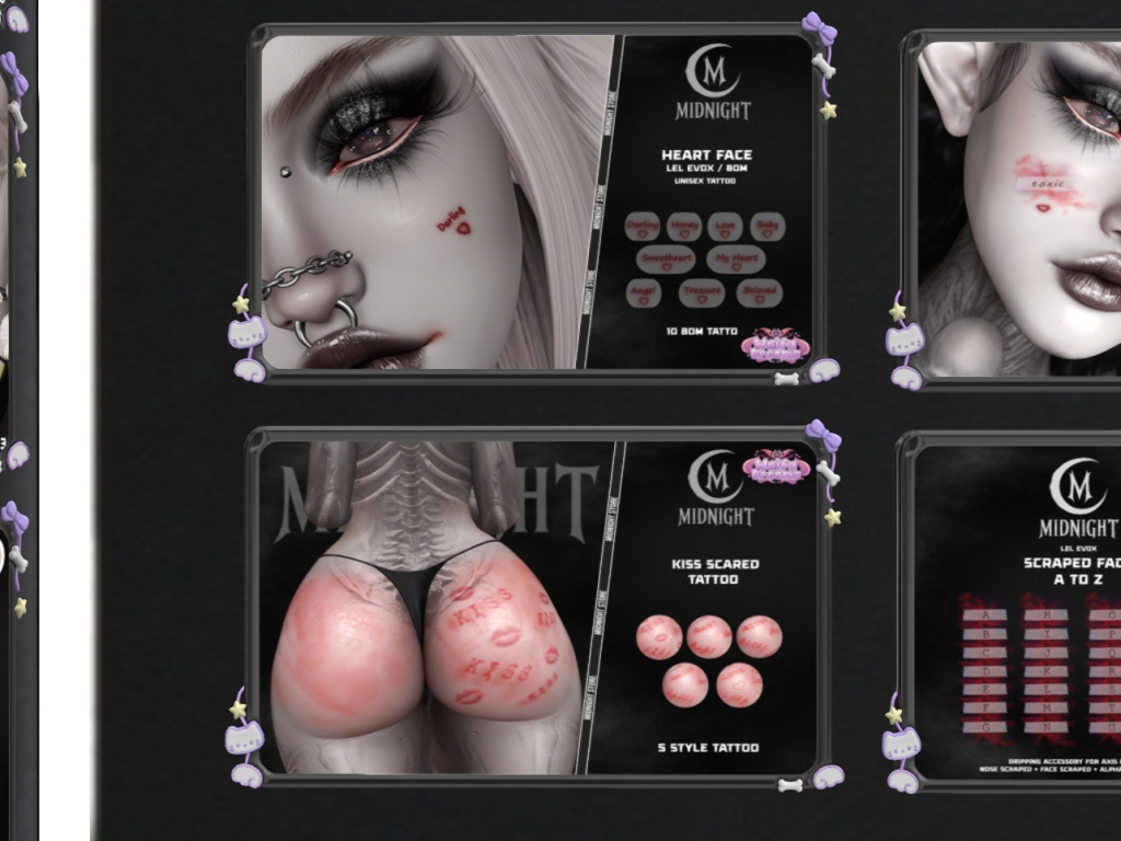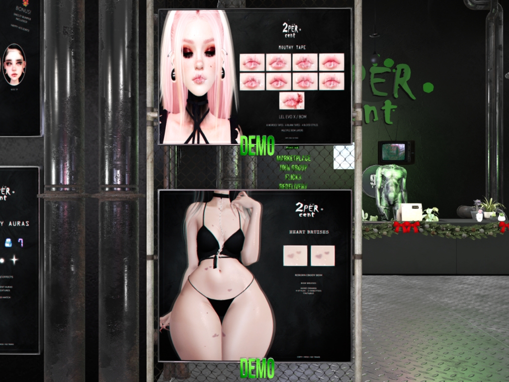 Featuring: Accessories, Animations/Poses/Props, Avatar Enhancements, Builds, Clothing, Cosmetics/Nails, Footwear, Home and Garden, Tattoos,