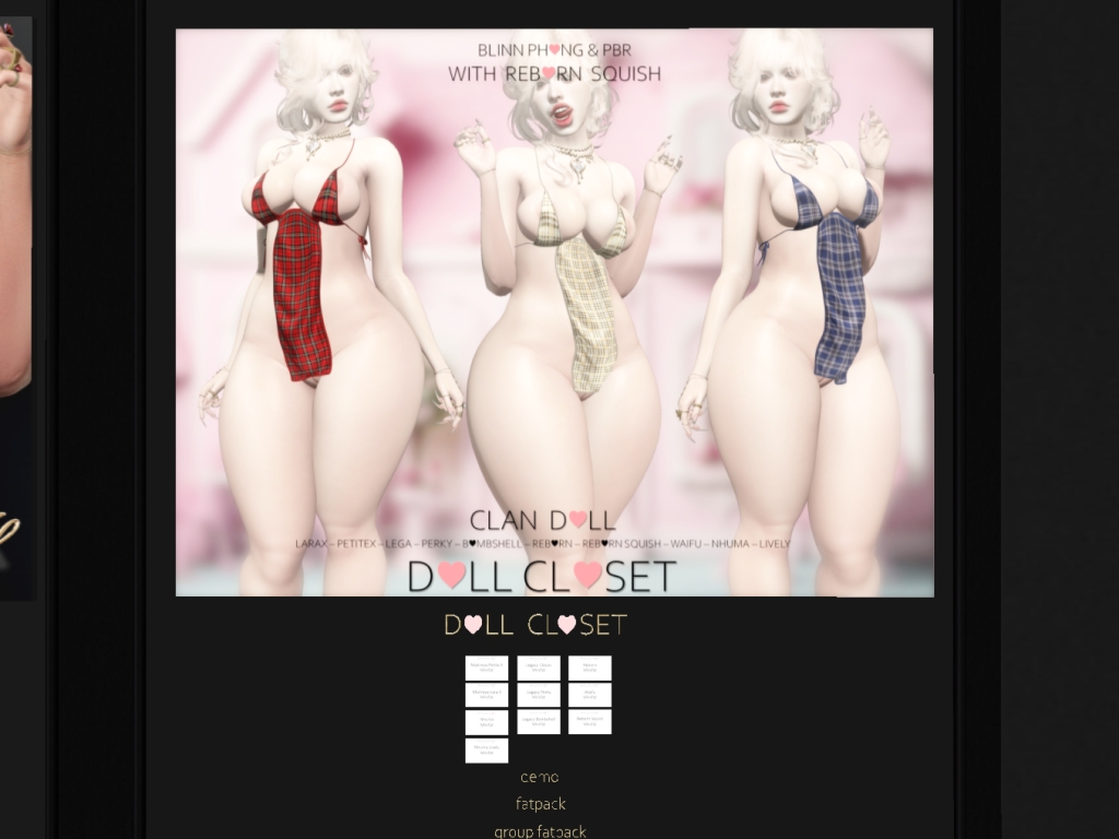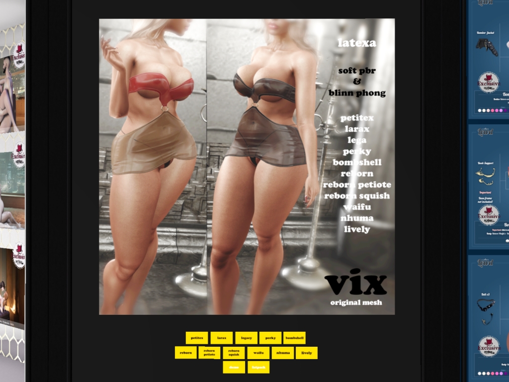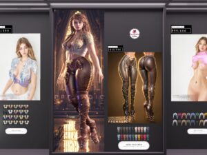 Featuring: Accessories, Animations/Poses/Props, Avatar Components, Avatar Enhancements, Clothing, Cosmetics/Nails, Footwear, Home and Garden, Skins, Tattoos, Textures