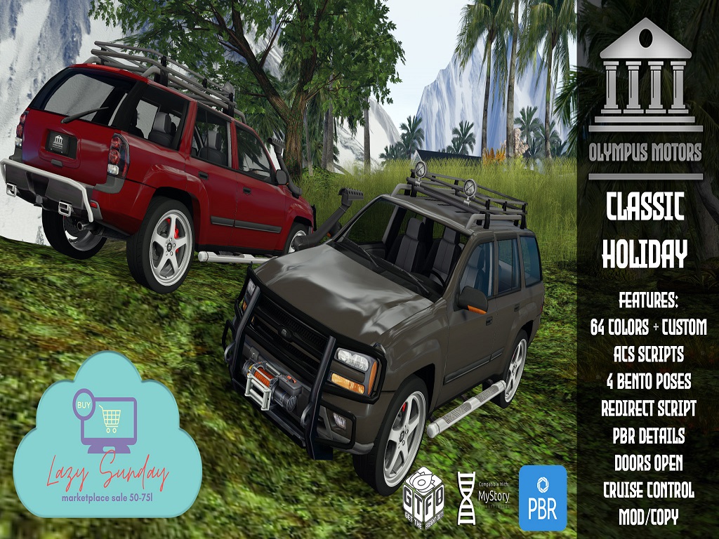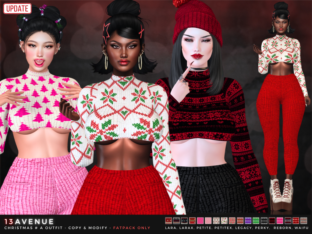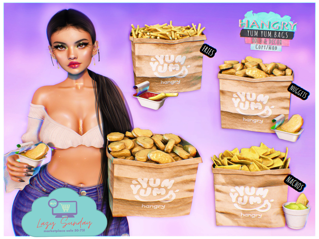 Featuring: Accessories, Animations/Poses/Props, Avatar Components, Avatar Enhancements, Builds, Clothing, Cosmetics/Nails, Footwear, Hairs, Home and Garden, Shapes, Skins, Tattoos, Tools, Vehicles