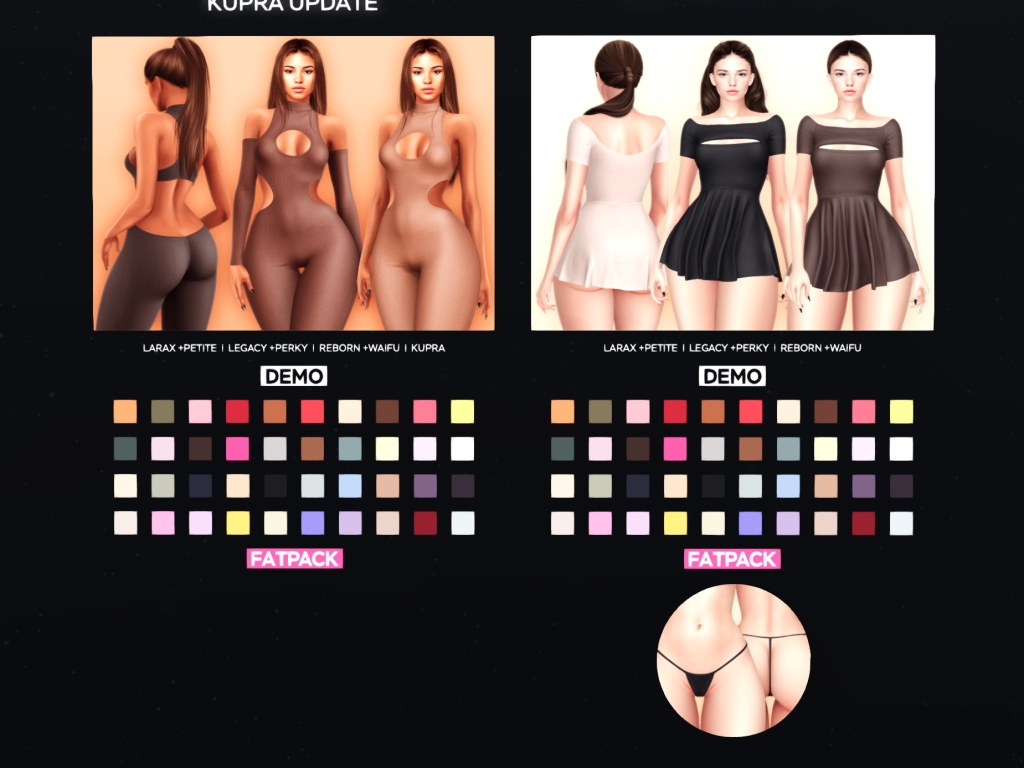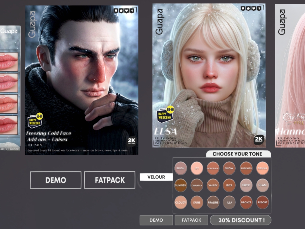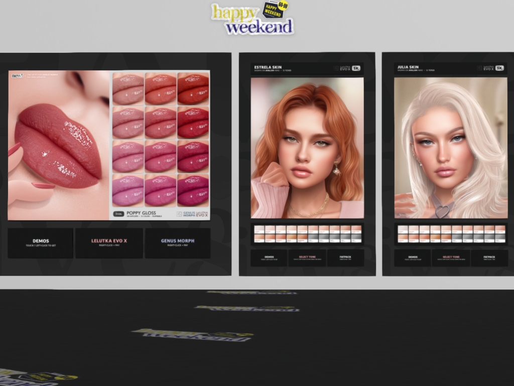 Featuring: Accessories, Animations/Poses/Props, Avatar Components, Avatar Enhancements, Builds, Clothing, Cosmetics/Nails, Footwear, Hairs, Home and Garden, Skins, Tattoos, Vehicles