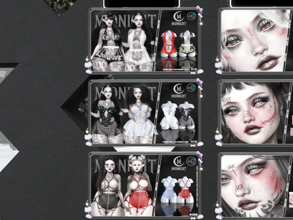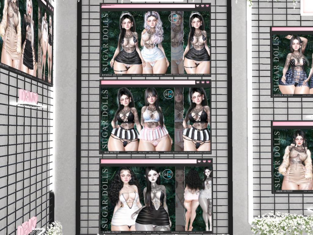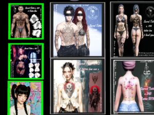 Featuring: Accessories, Animations/Poses/Props, Avatar Components, Avatar Enhancements, Builds, Clothing, Cosmetics/Nails, Footwear, Hairs, Home and Garden, Shapes, Tattoos