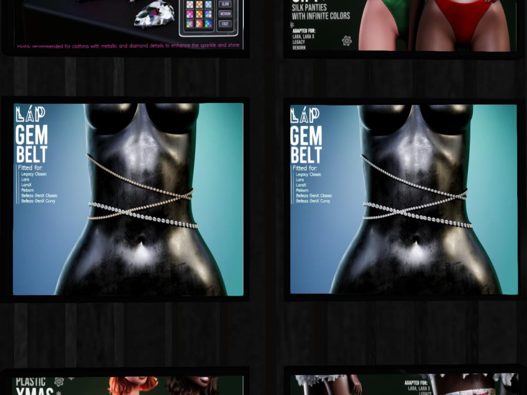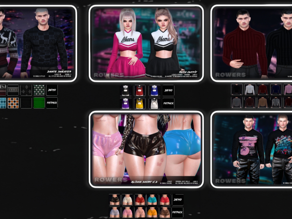Featuring: Accessories, Animations/Poses/Props, Avatar Components, Avatar Enhancements, Clothing, Cosmetics/Nails, Footwear, Home and Garden, Skins, Tattoos, Vehicles