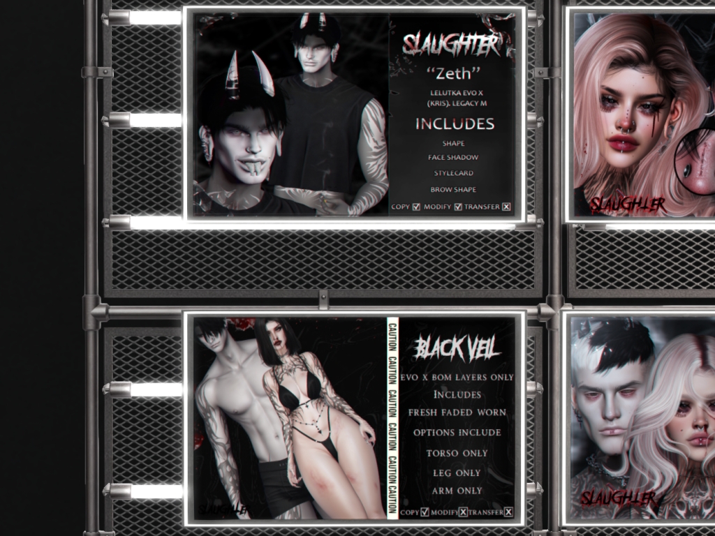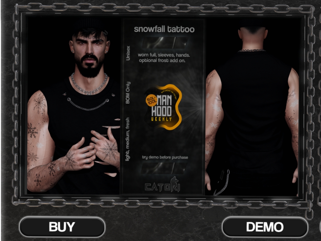 Featuring: Accessories, Animations/Poses/Props, Builds, Clothing, Footwear, Hairs, Home and Garden, Shapes, Tattoos