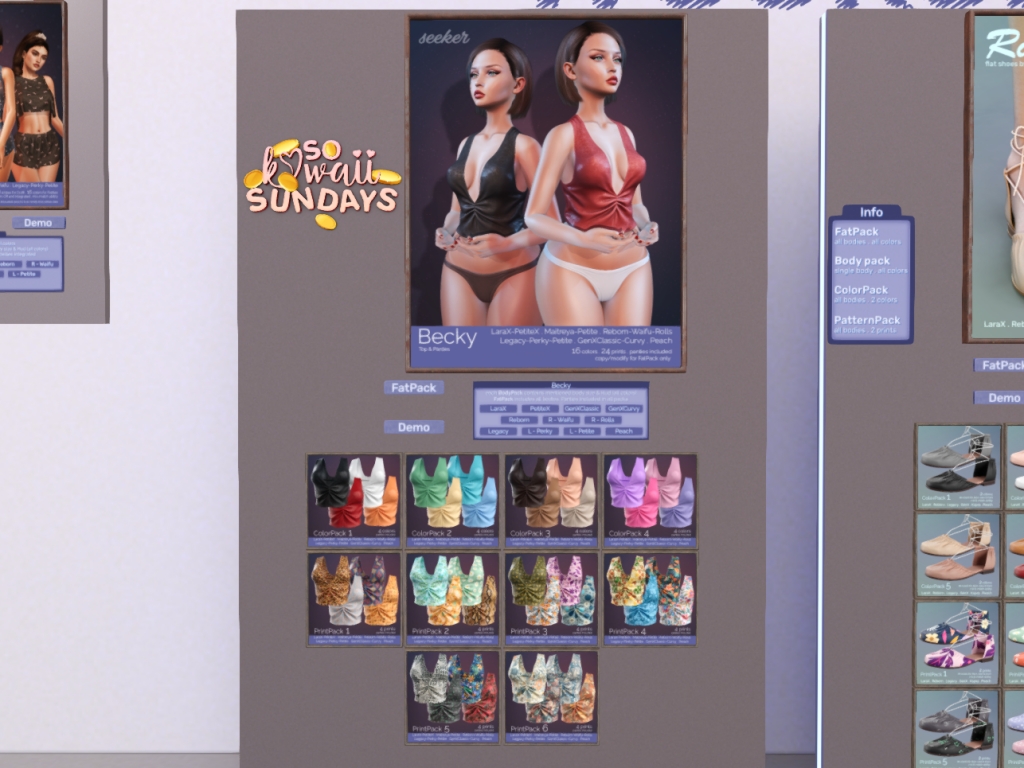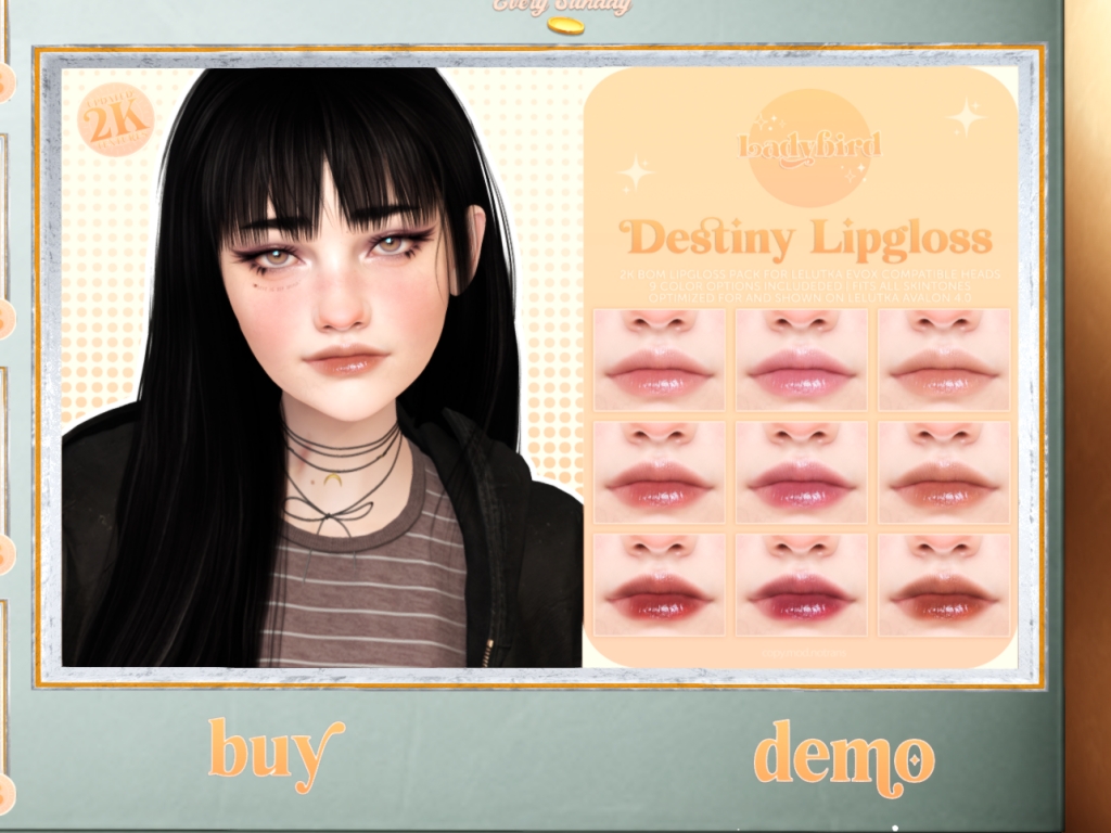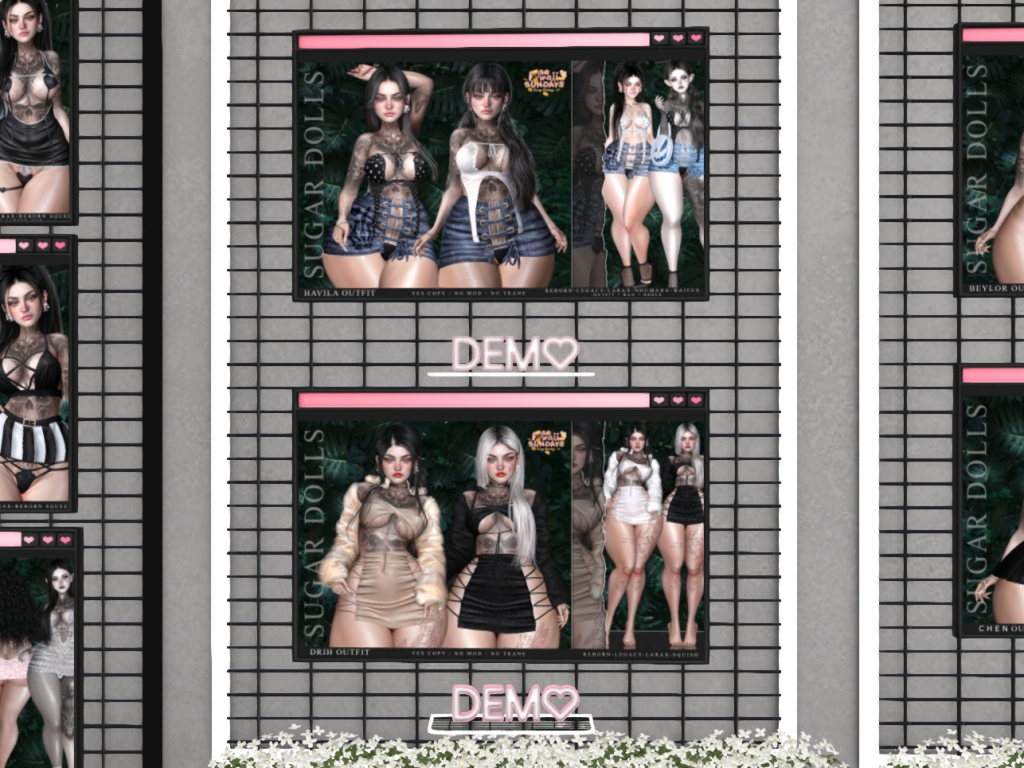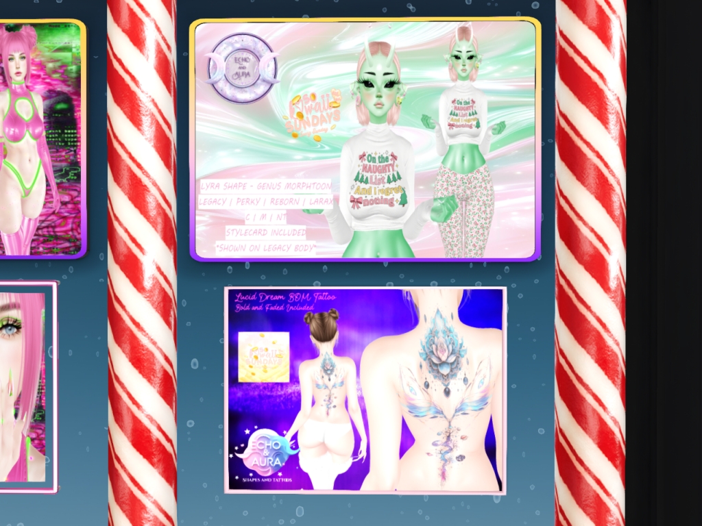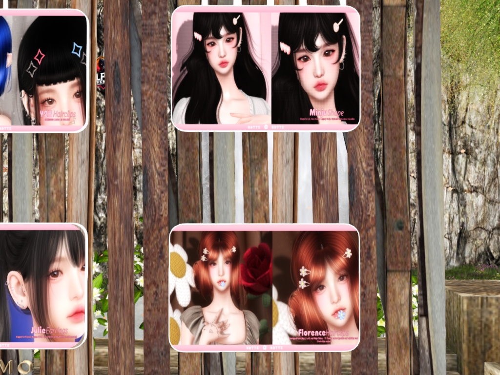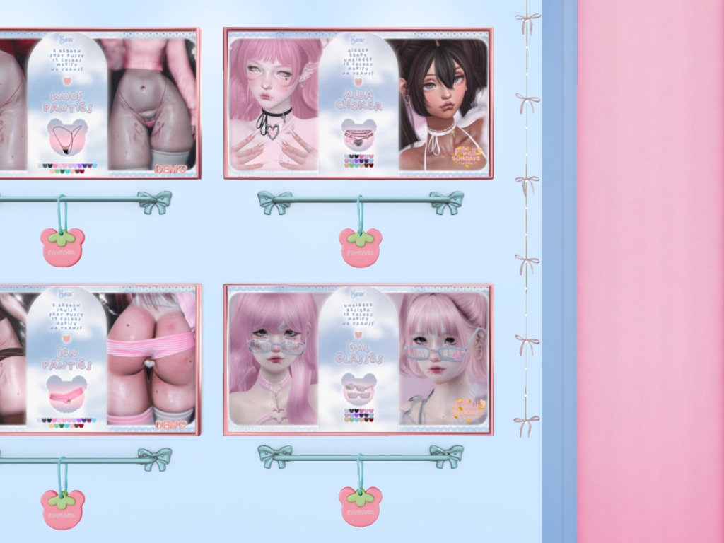 Featuring: Accessories, Animations/Poses/Props, Avatar Components, Avatar Enhancements, Builds, Clothing, Cosmetics/Nails, Footwear, Home and Garden, Shapes, Skins, Tattoos