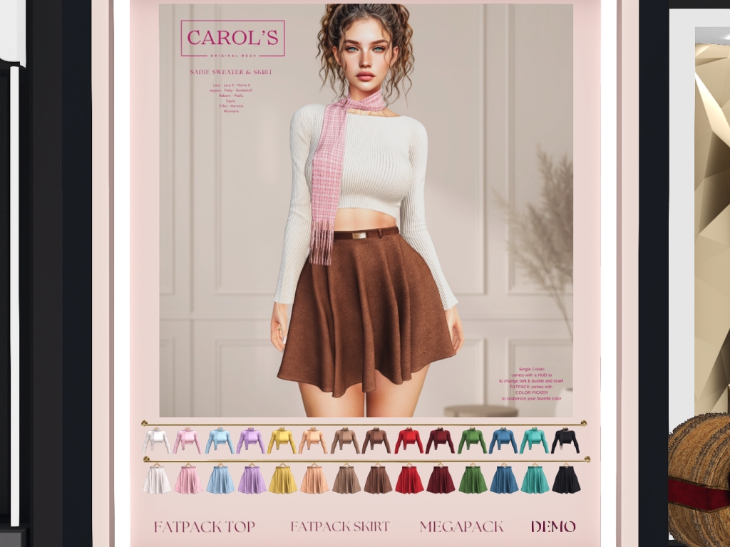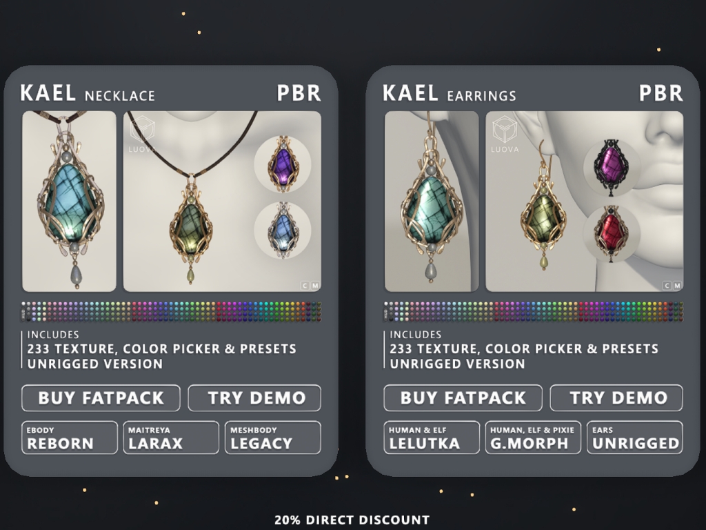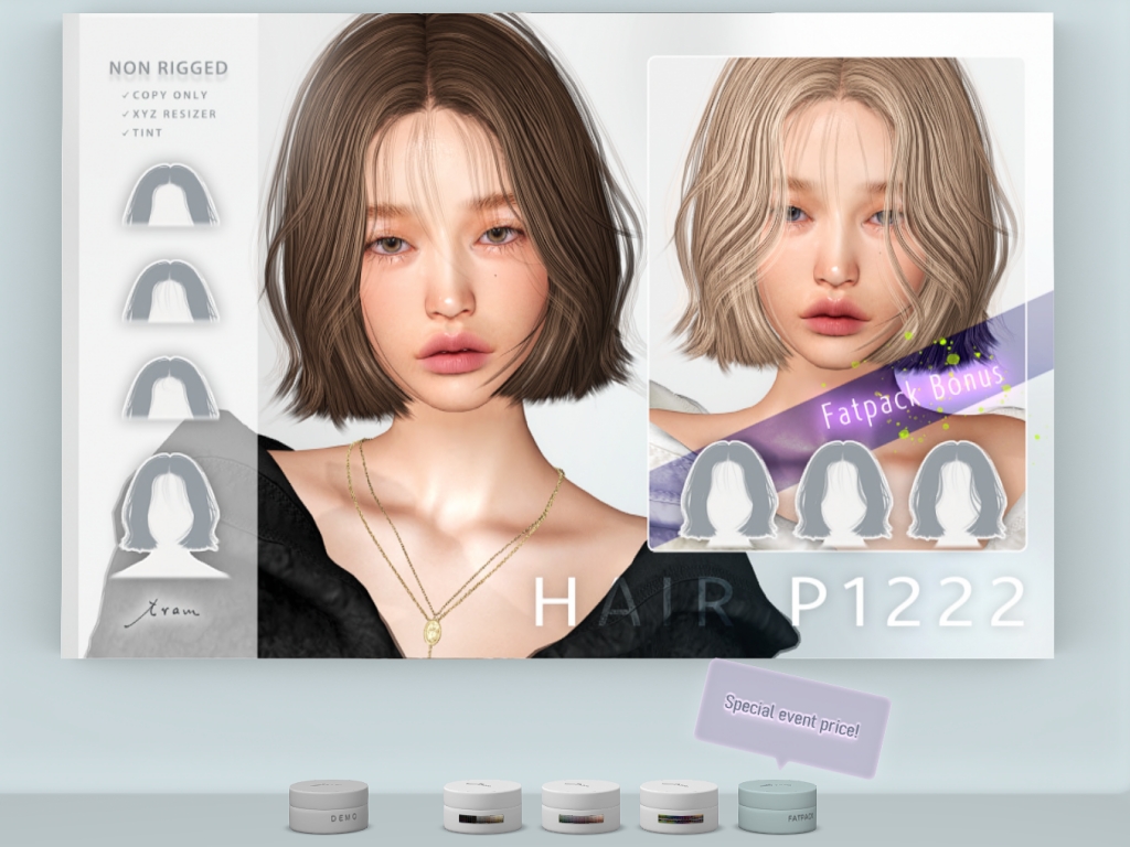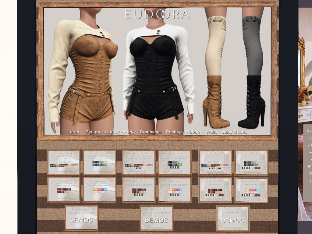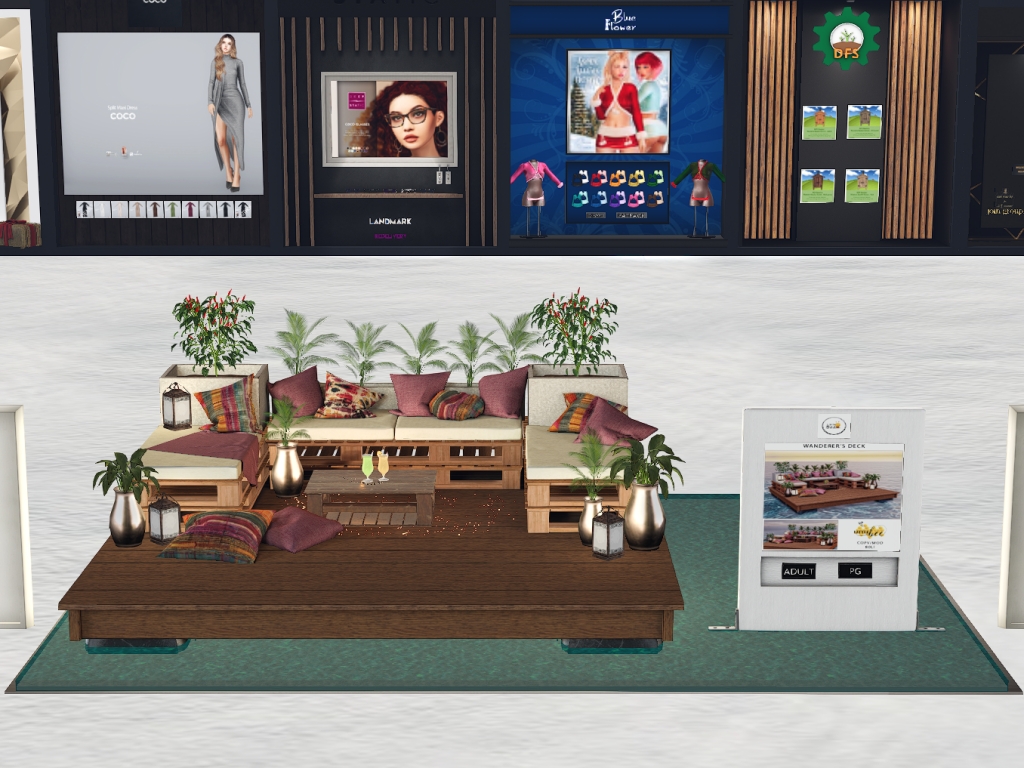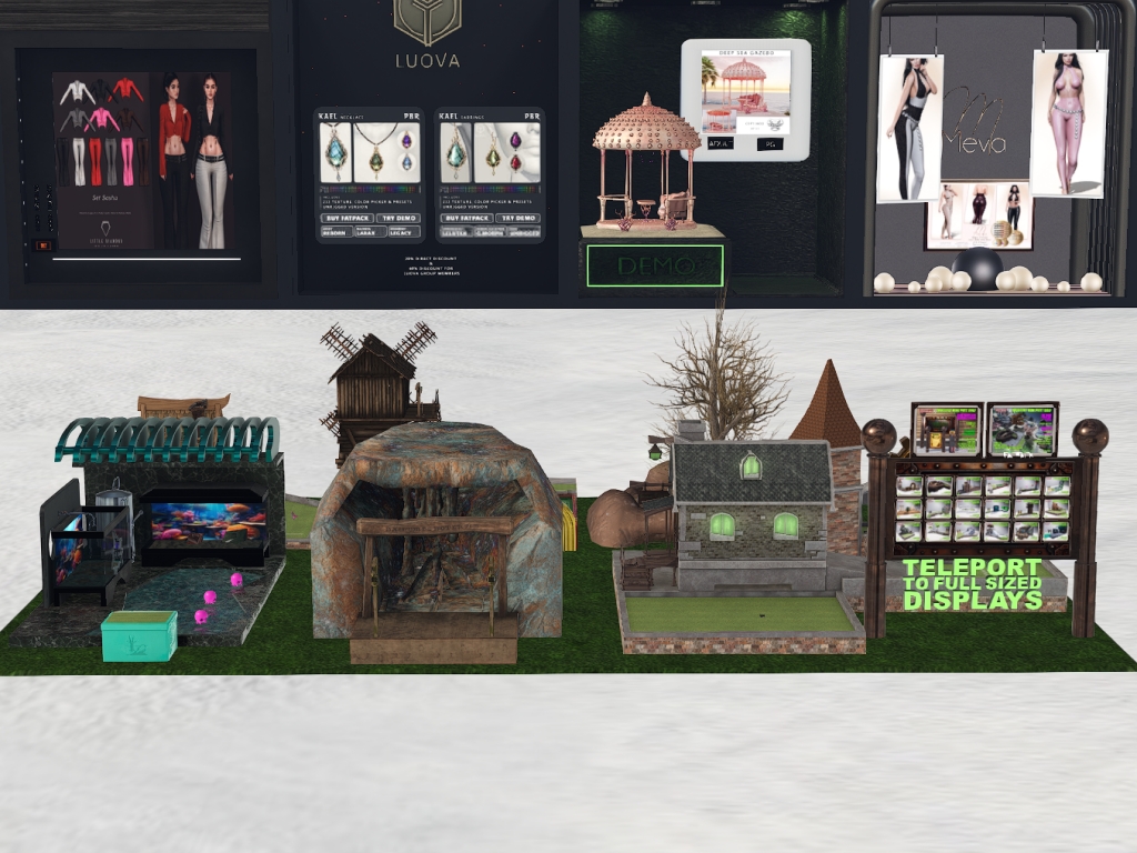 Featuring: Accessories, Animations/Poses/Props, Avatar Components, Avatar Enhancements, Builds, Clothing, Cosmetics/Nails, Hairs, Home and Garden, Shapes, Skins, Tattoos
