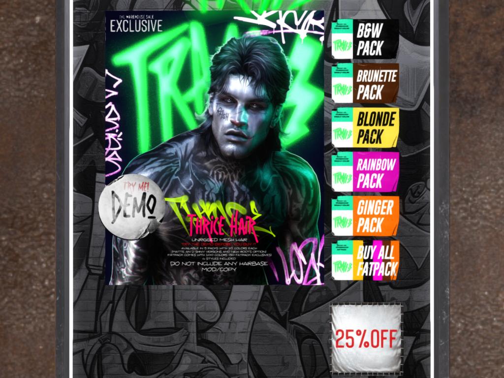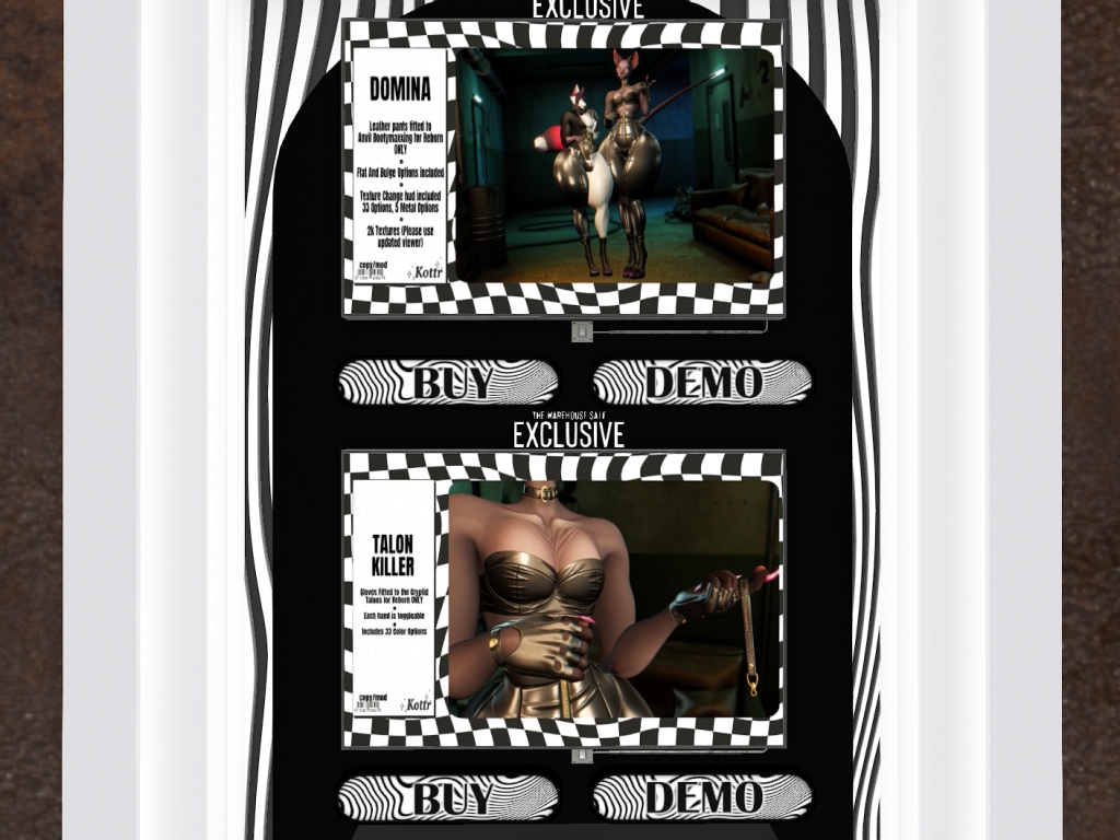 Featuring: Accessories, Animations/Poses/Props, Avatar Components, Avatar Enhancements, Builds, Clothing, Cosmetics/Nails, Footwear, Hairs, Home and Garden, Skins, Tattoos