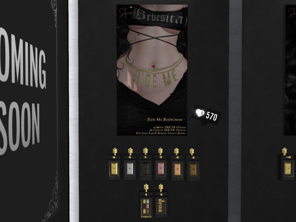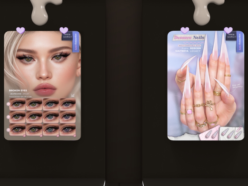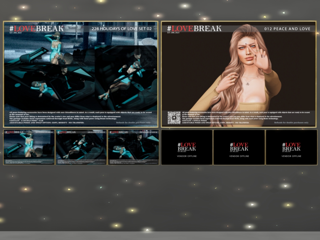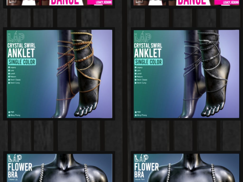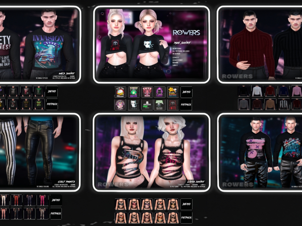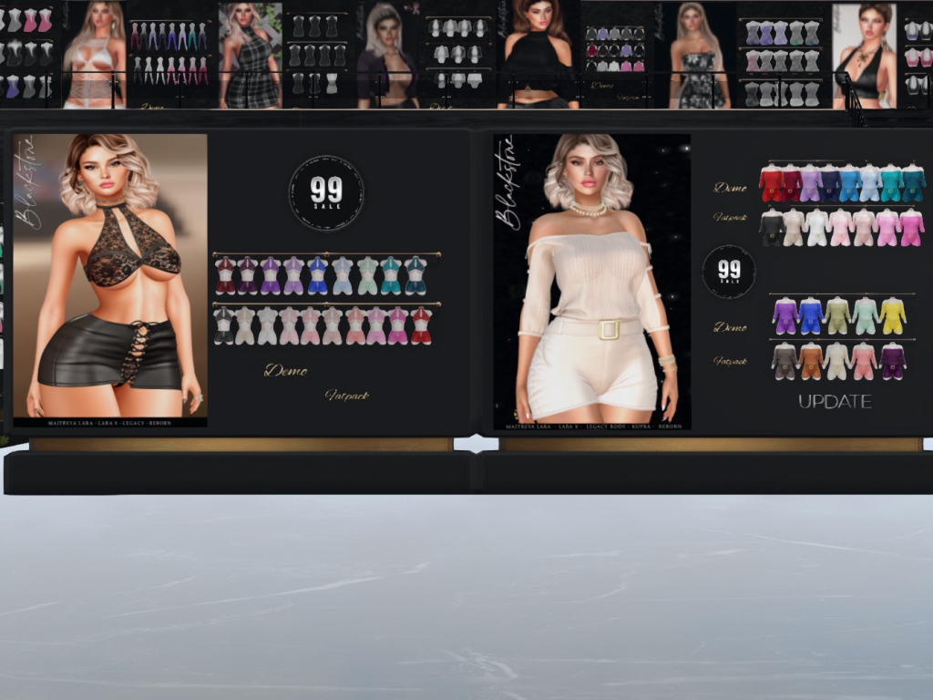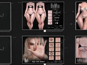 Featuring: Accessories, Animations/Poses/Props, Avatar Components, Avatar Enhancements, Clothing, Cosmetics/Nails, Footwear, Home and Garden, HUDs, Skins, Tattoos, Vehicles