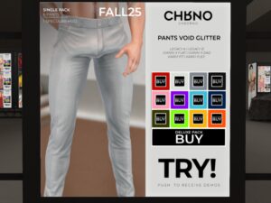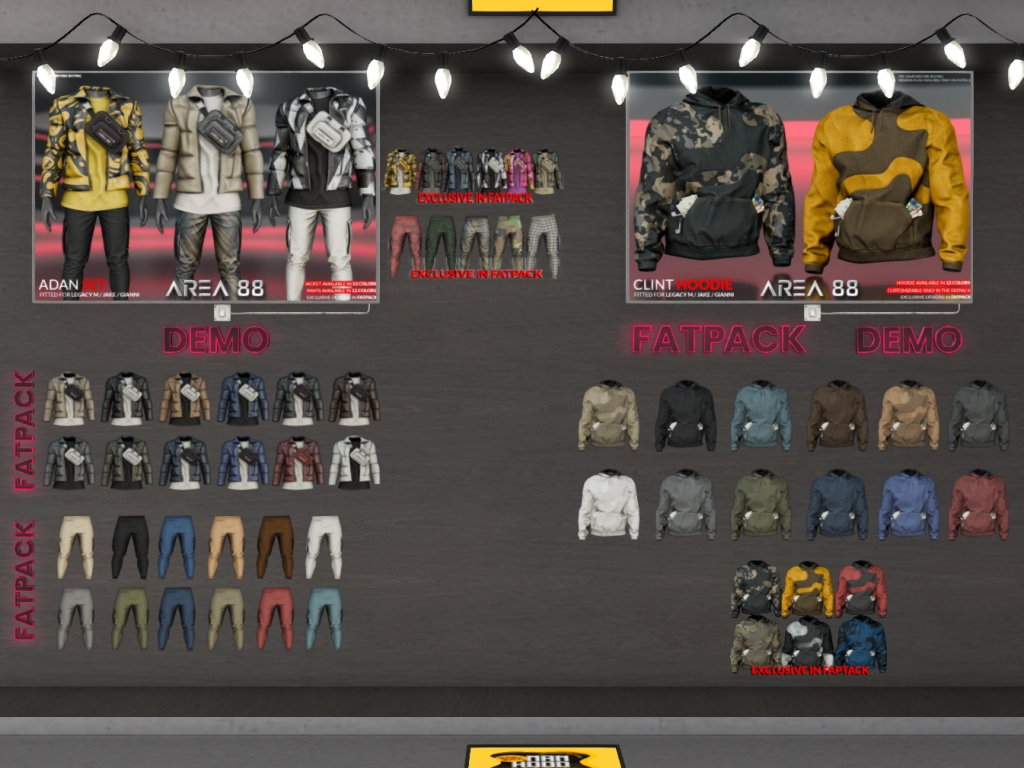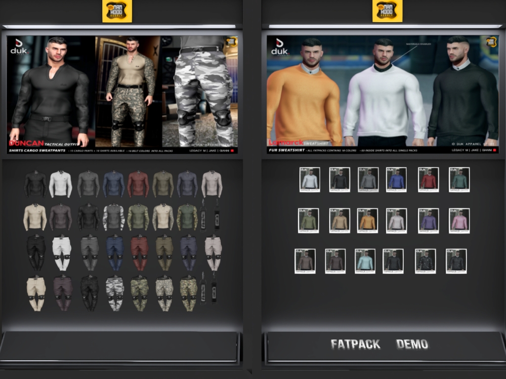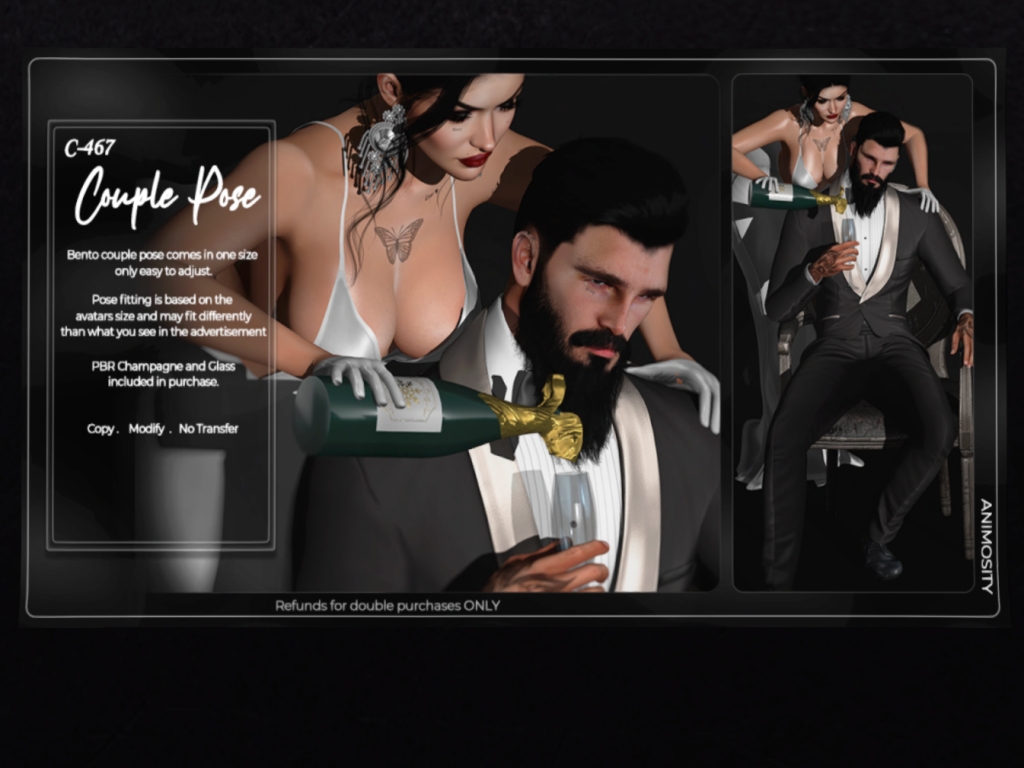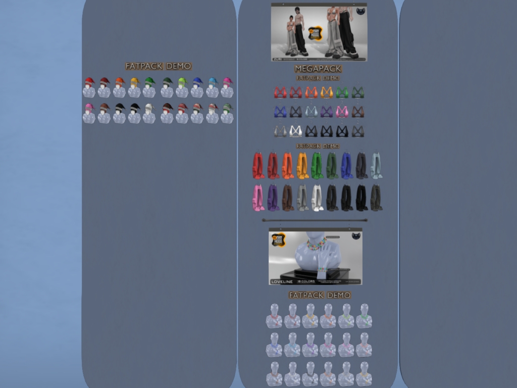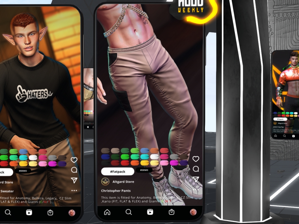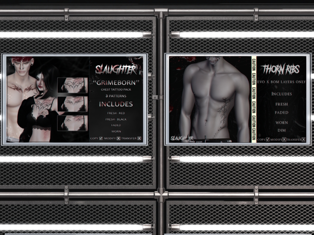 Featuring: Accessories, Animations/Poses/Props, Avatar Enhancements, Builds, Clothing, Footwear, Hairs, Skins, Tattoos