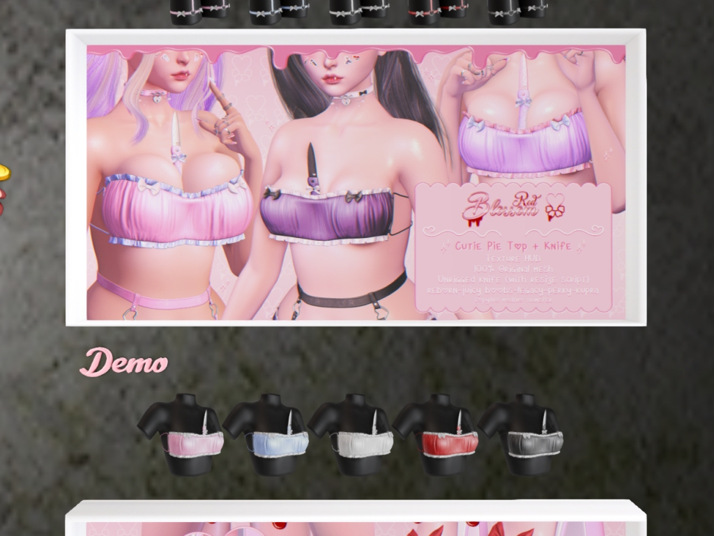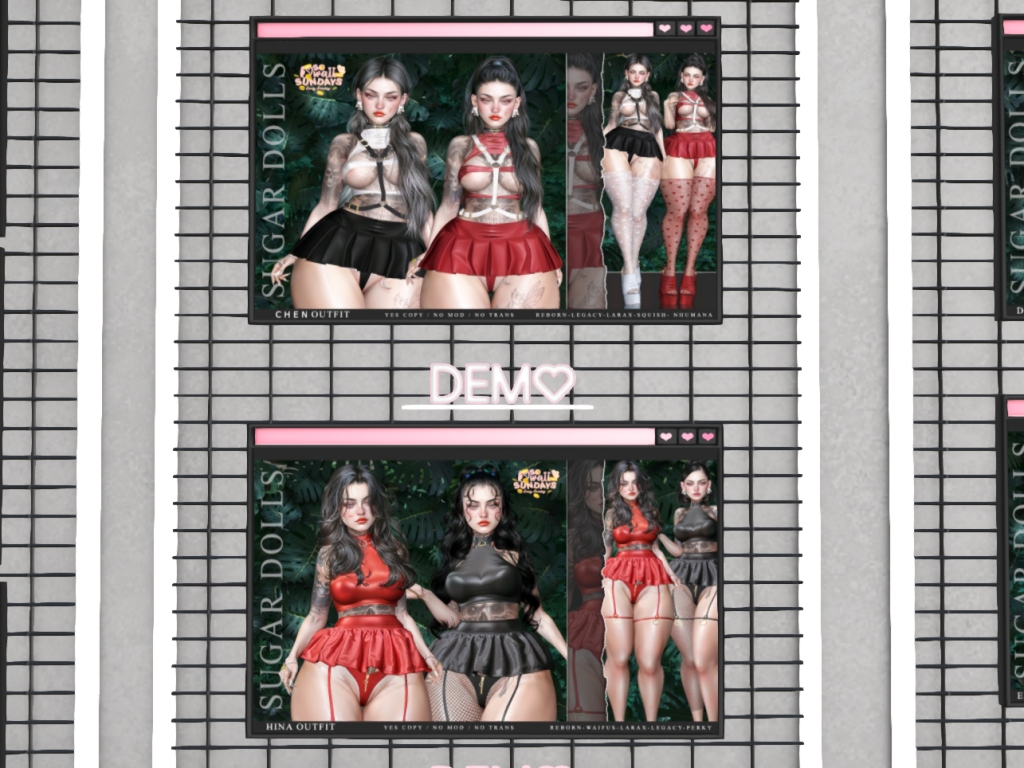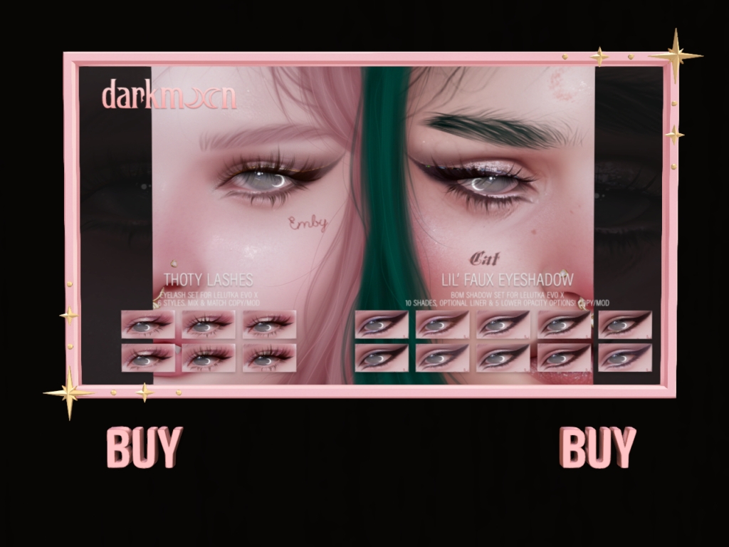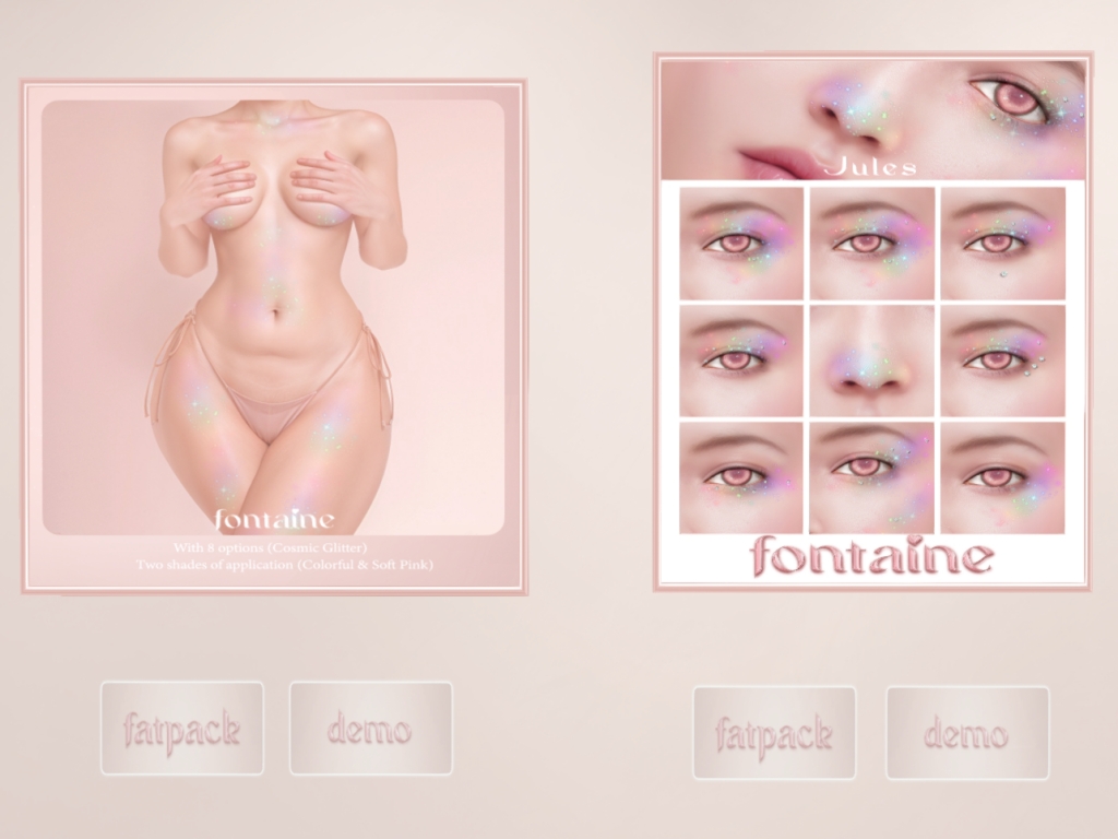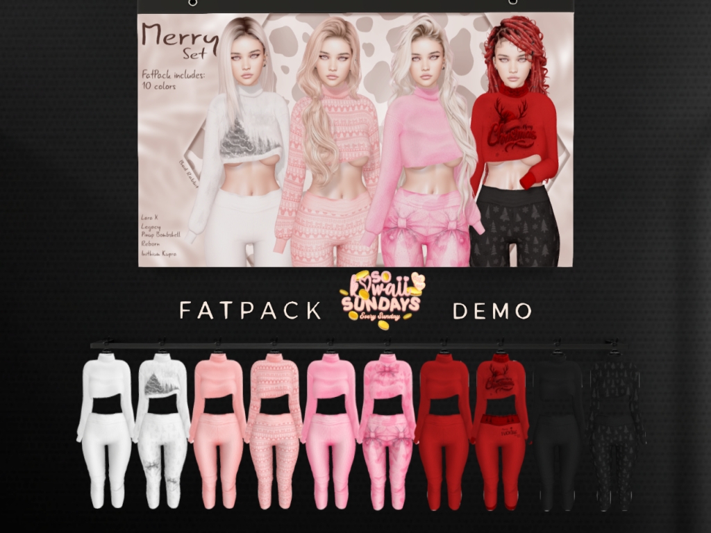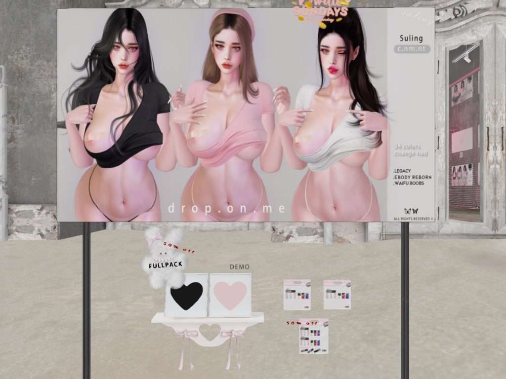 Featuring: Accessories, Animations/Poses/Props, Avatar Components, Avatar Enhancements, Builds, Clothing, Cosmetics/Nails, Footwear, Shapes, Skins, Tattoos