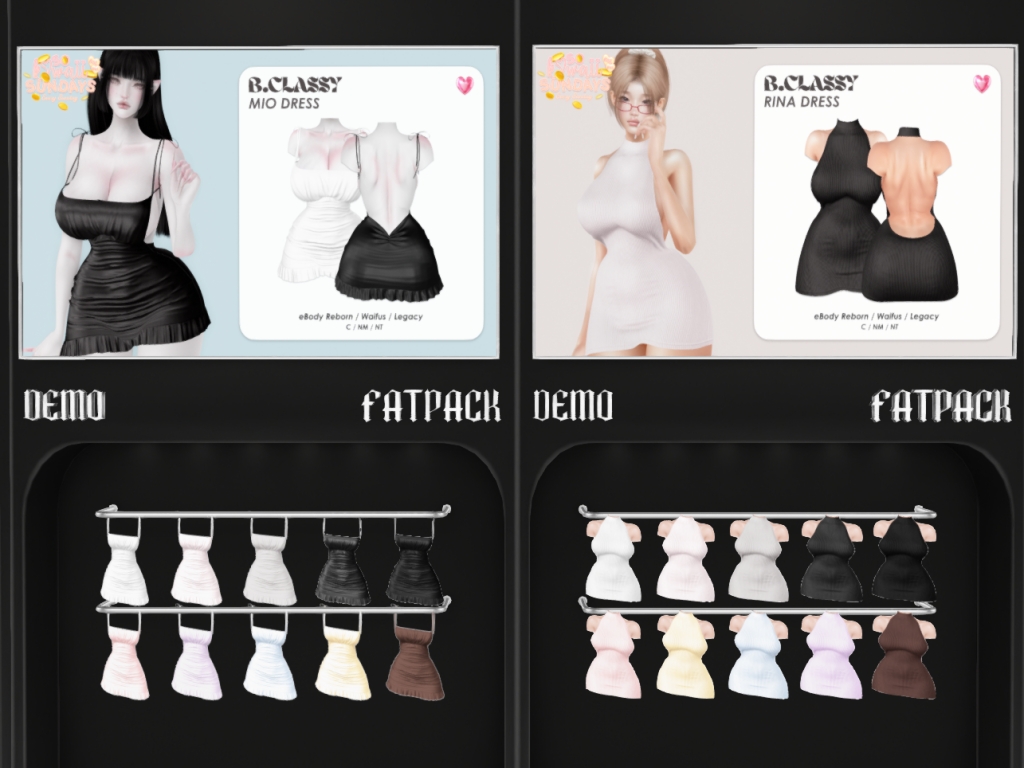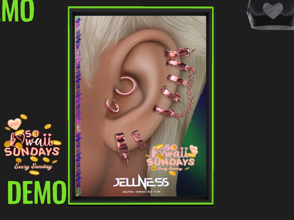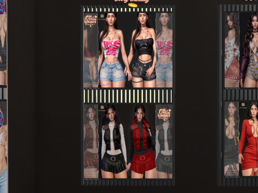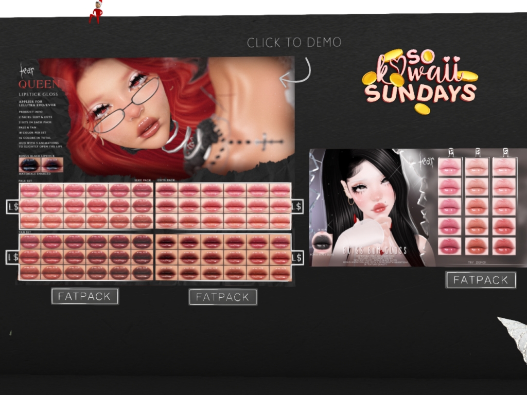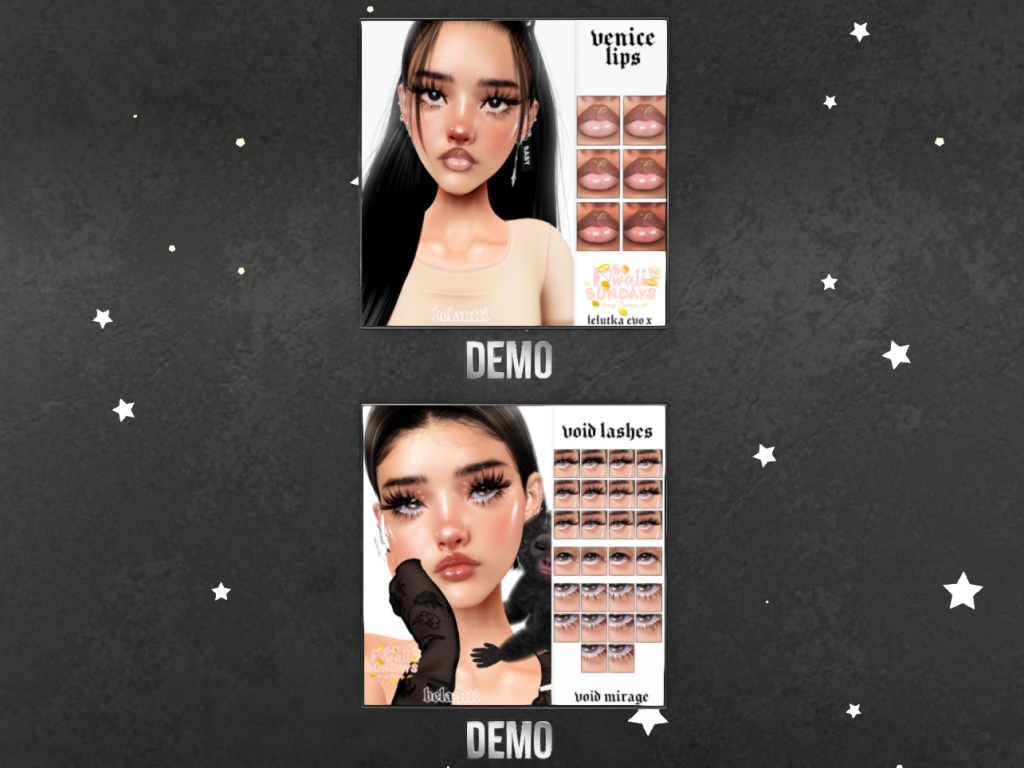 Featuring: Accessories, Animations/Poses/Props, Avatar Components, Avatar Enhancements, Builds, Clothing, Cosmetics/Nails, Footwear, Shapes, Skins, Tattoos