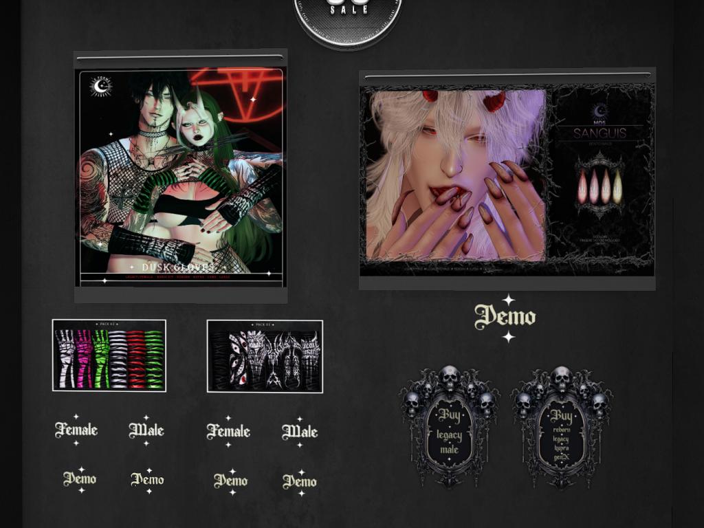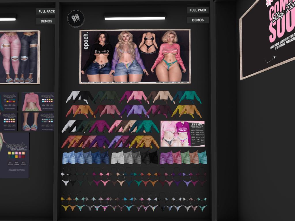 Featuring: Accessories, Animations/Poses/Props, Avatar Components, Avatar Enhancements, Clothing, Cosmetics/Nails, Footwear, Home and Garden, HUDs, Skins, Tattoos, Vehicles