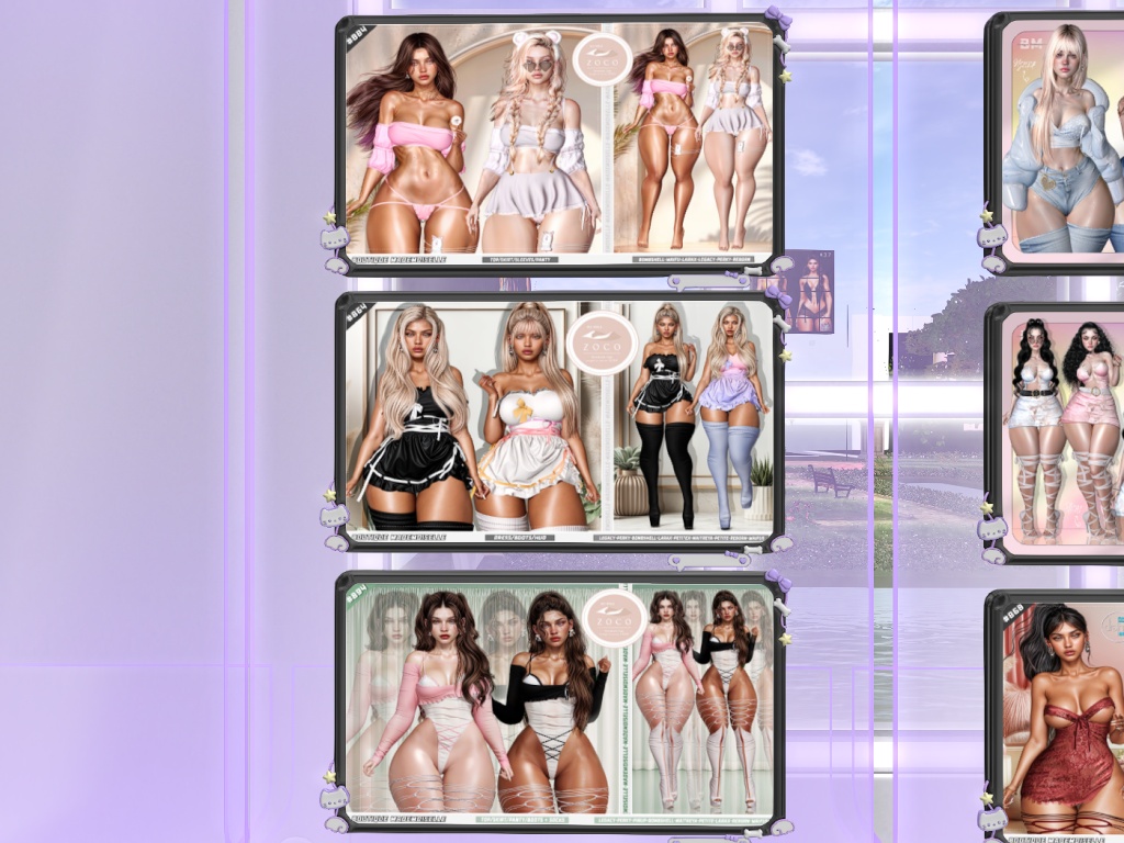 Featuring: Accessories, Animations/Poses/Props, Builds, Clothing, Cosmetics/Nails, Footwear, Hairs, Home and Garden