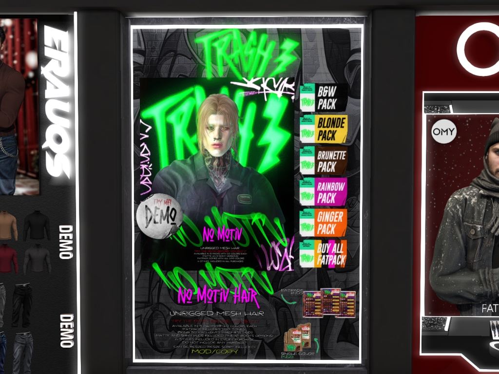 Featuring: Accessories, Animations/Poses/Props, Avatar Enhancements, Builds, Clothing, Footwear, Hairs, Home and Garden, Interactive Games, Shapes, Skins, Tattoos,