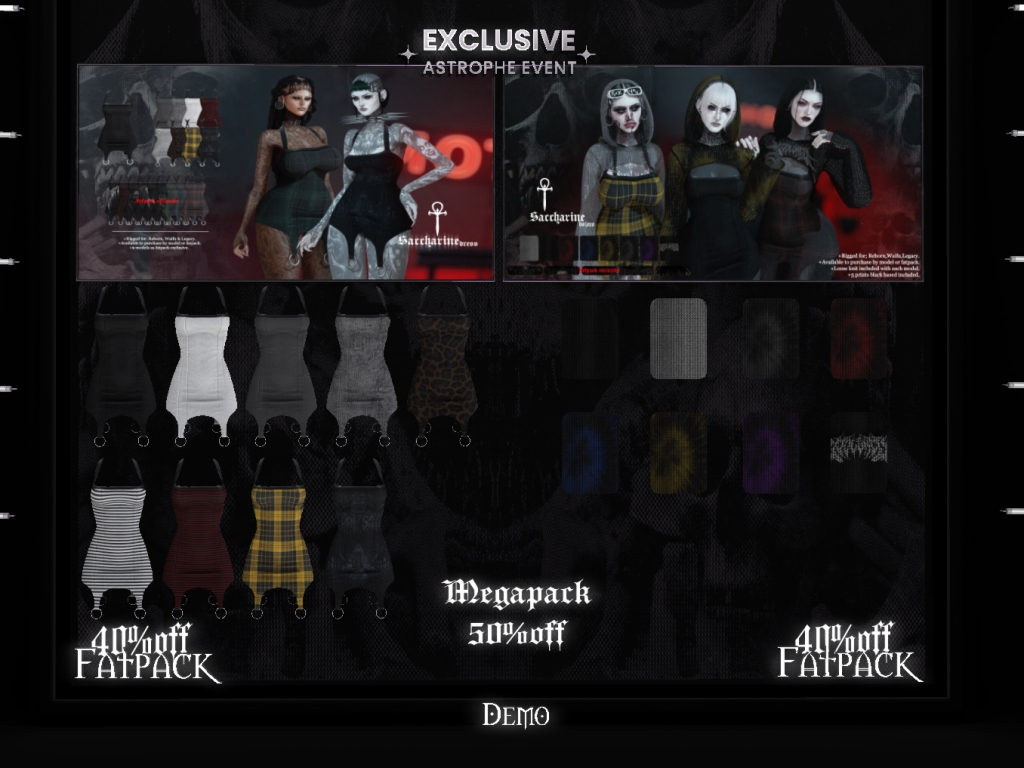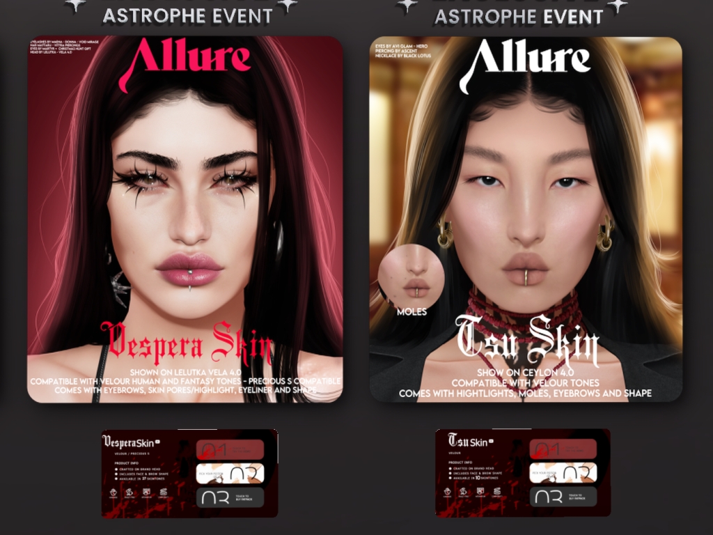 Featuring: Accessories, Animations/Poses/Props, Avatar Enhancements, Builds, Clothing, Cosmetics/Nails, Footwear, Home and Garden, Shapes, Skins, Tattoos