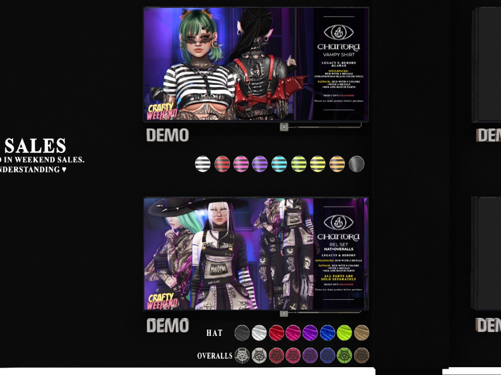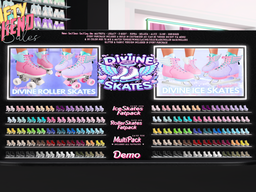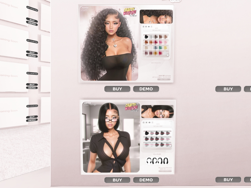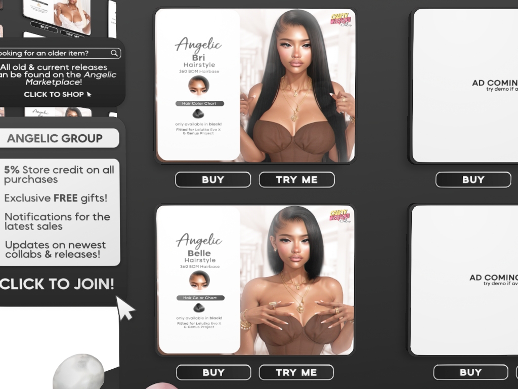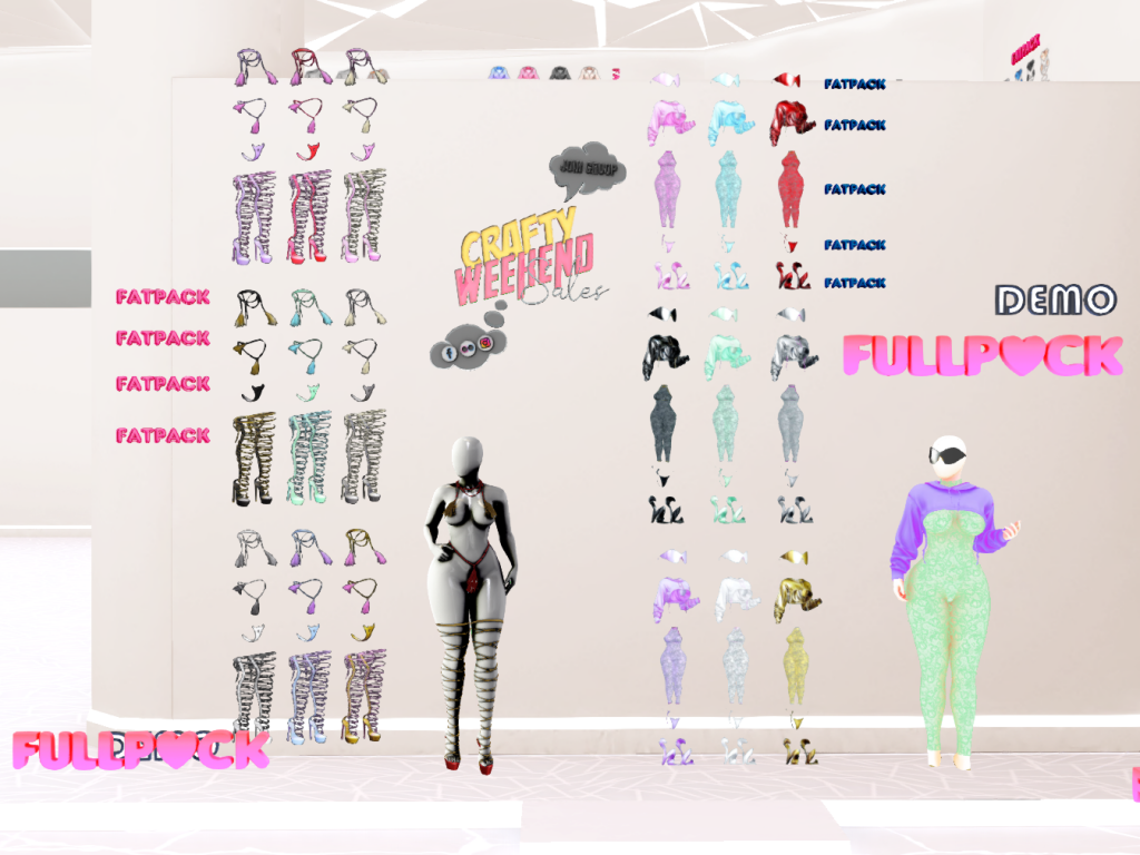 Featuring: Accessories, Animations/Poses/Props, Avatar Components, Avatar Enhancements, Builds, Clothing, Cosmetics/Nails, Footwear, Hairs, Home and Garden, Skins, Tattoos, Vehicles