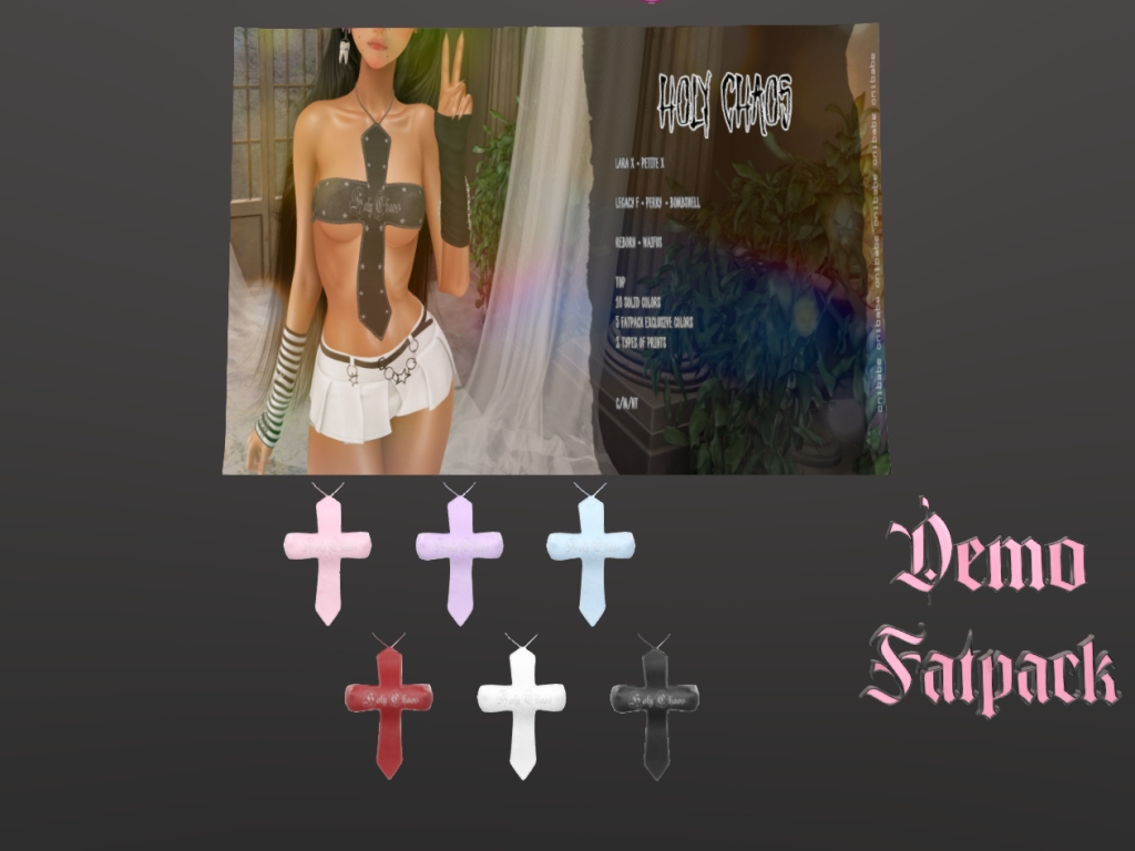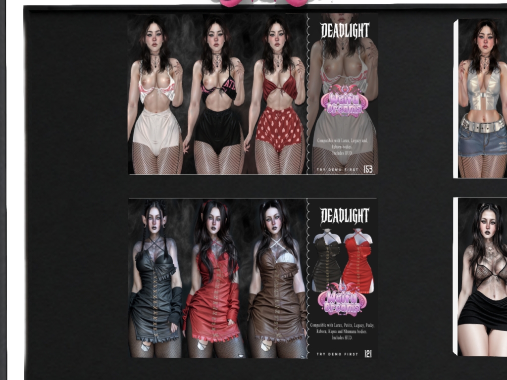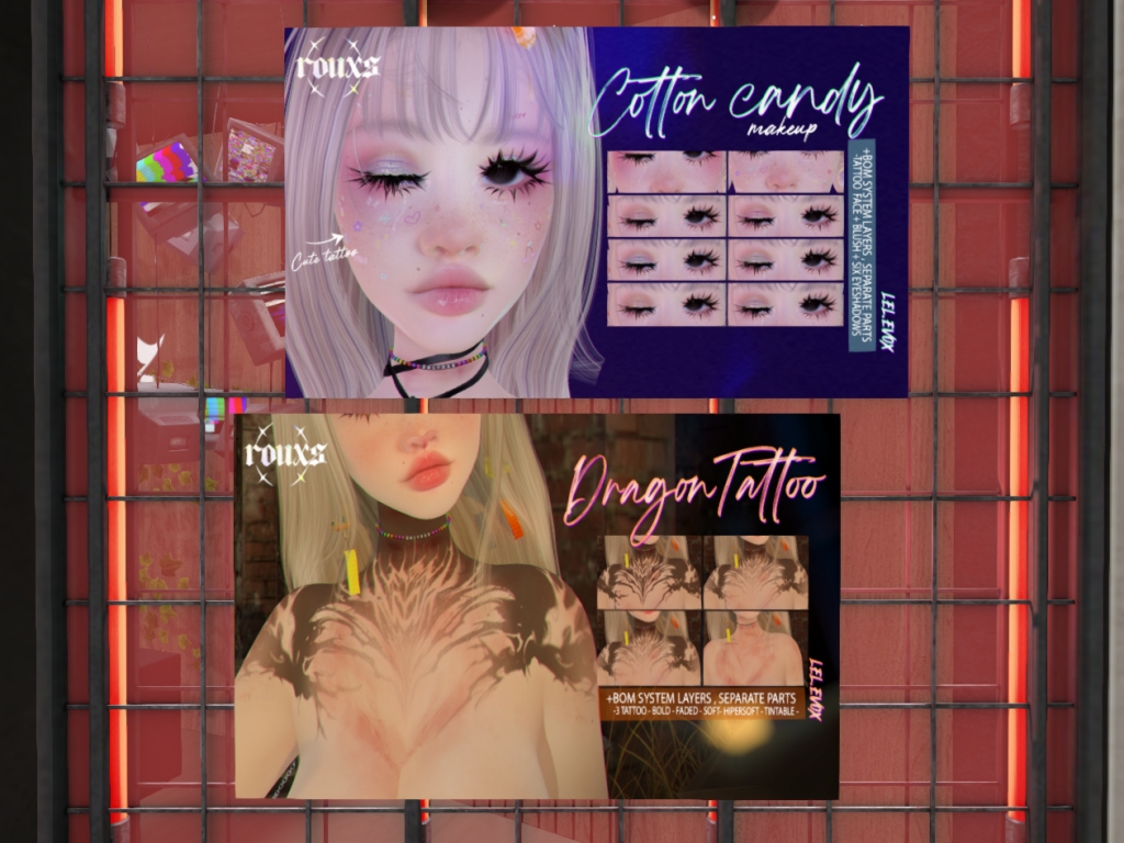 Featuring: Accessories, Animations/Poses/Props, Avatar Enhancements, Builds, Clothing, Cosmetics/Nails, Footwear, Skins, Tattoos