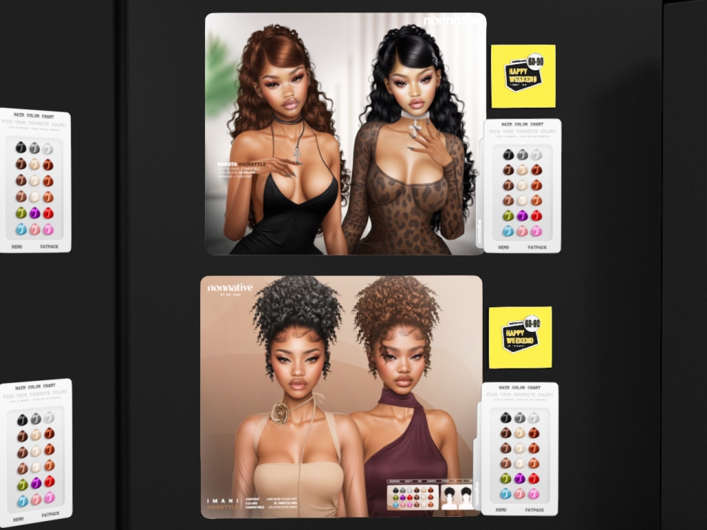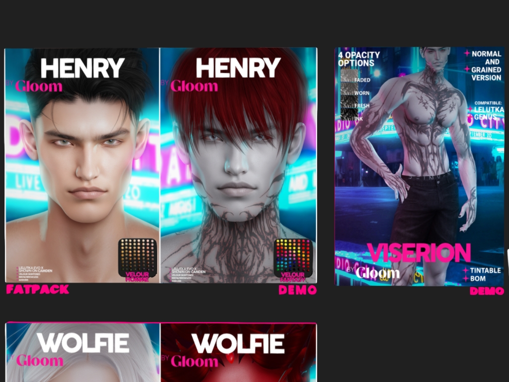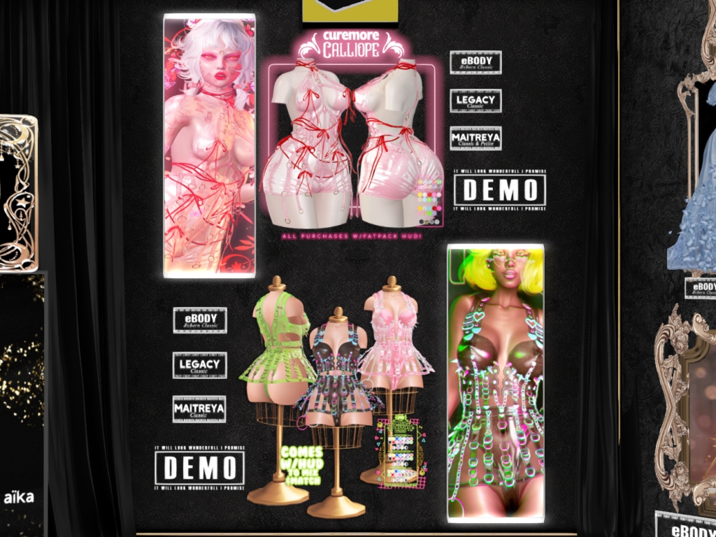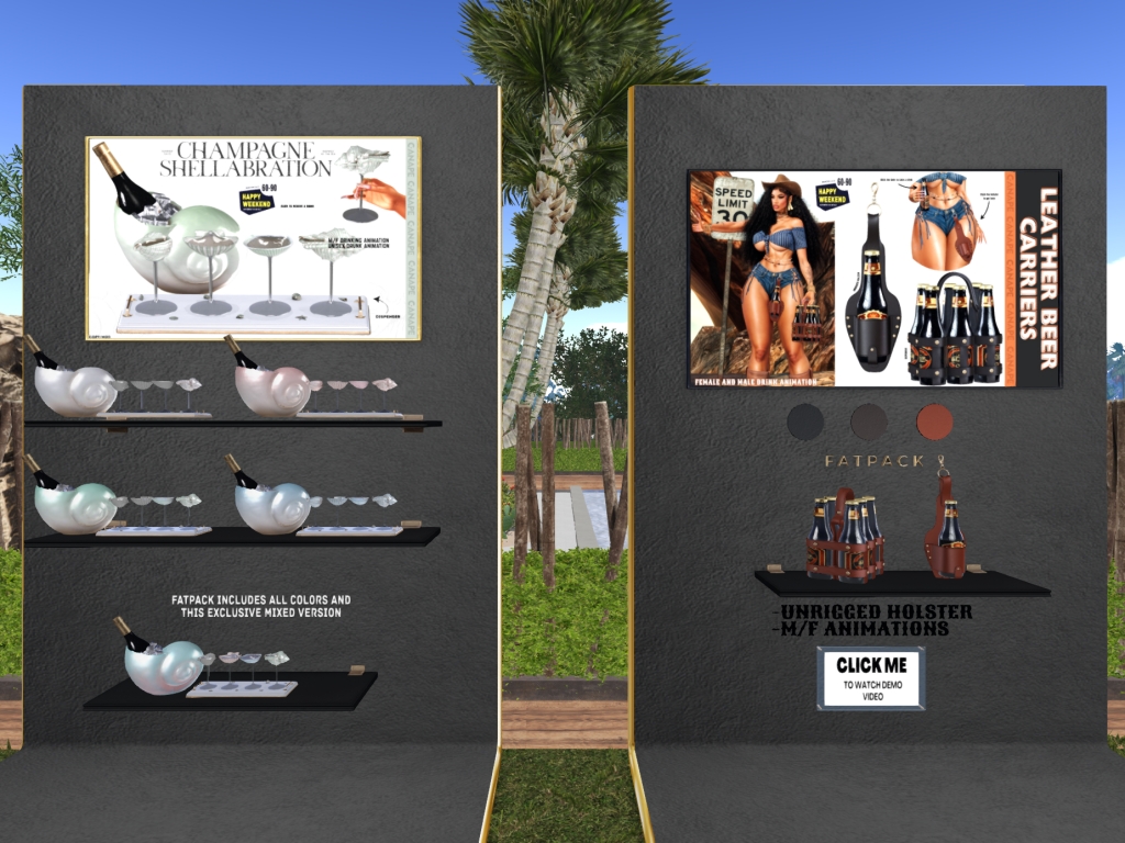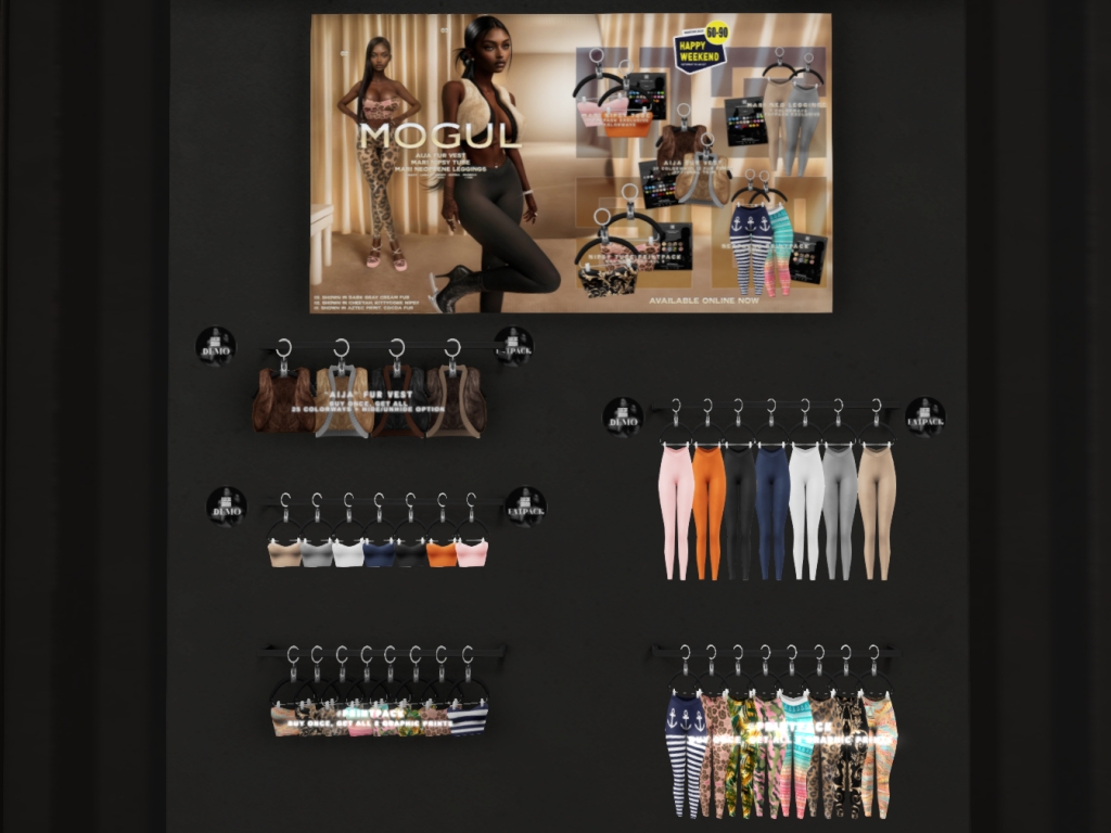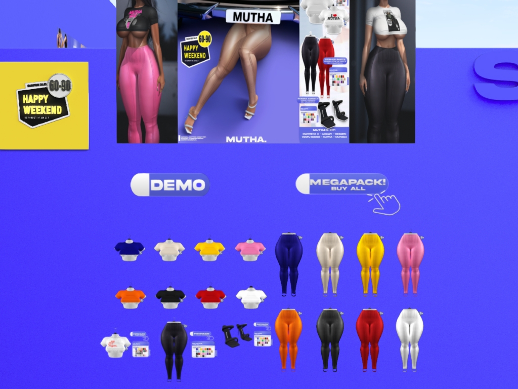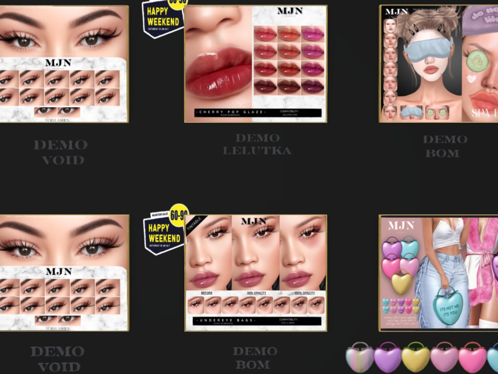 Featuring: Accessories, Animations/Poses/Props, Avatar Components, Avatar Enhancements, Builds, Clothing, Cosmetics/Nails, Footwear, Hairs, Home and Garden, HUDs, Interactive Games, Shapes, Skins, Tattoos, Vehicles