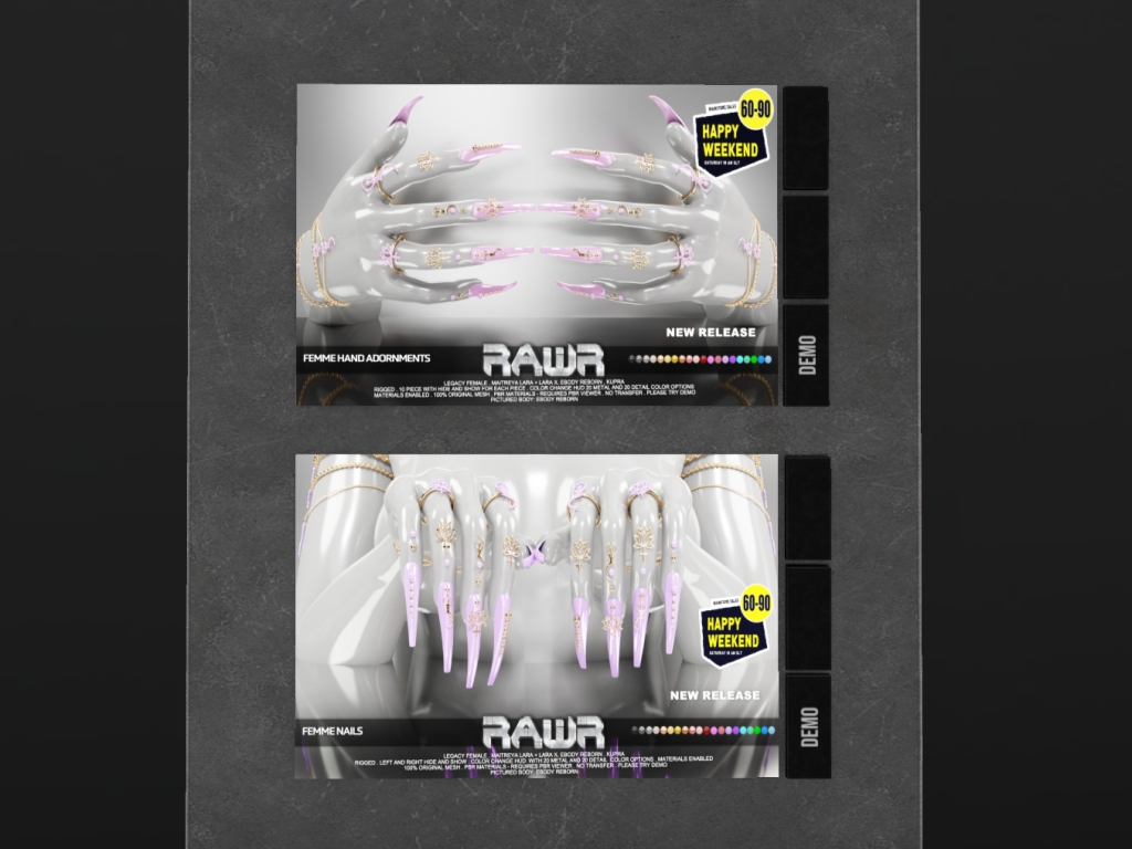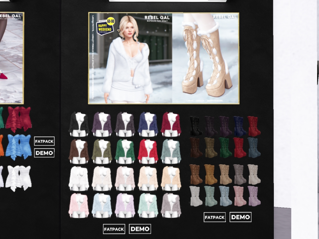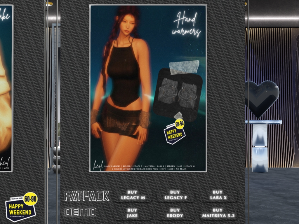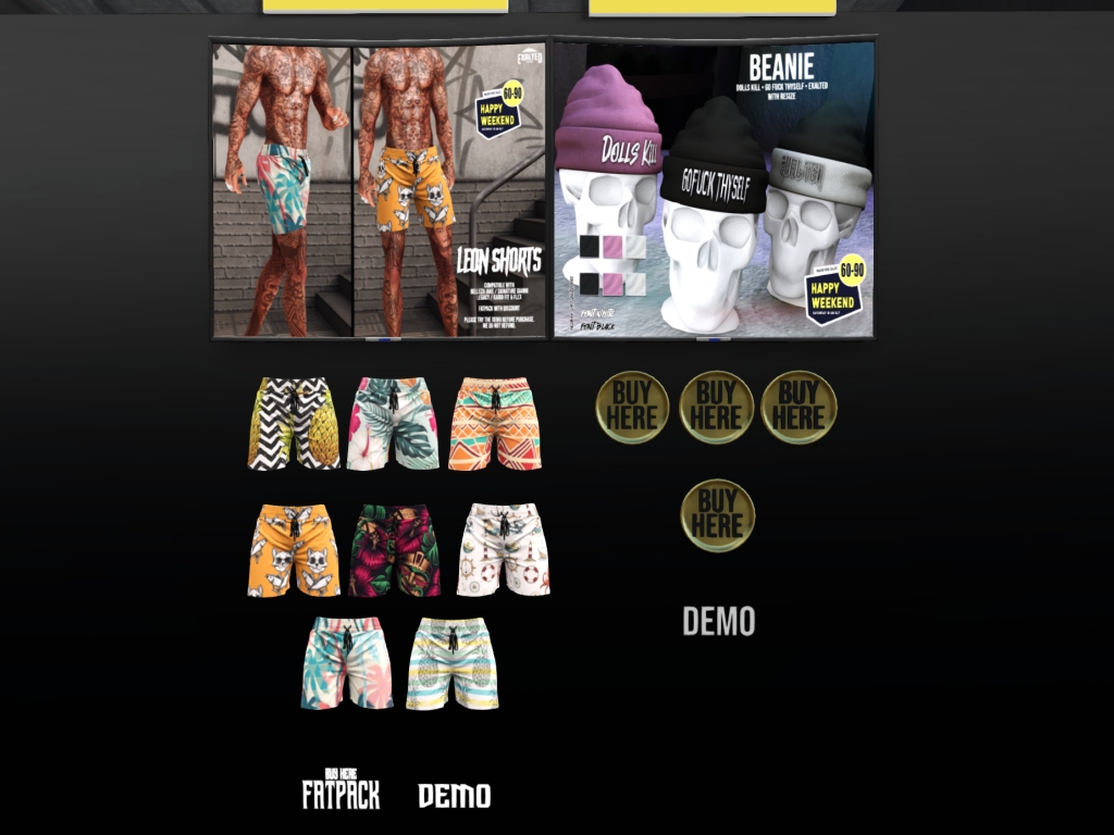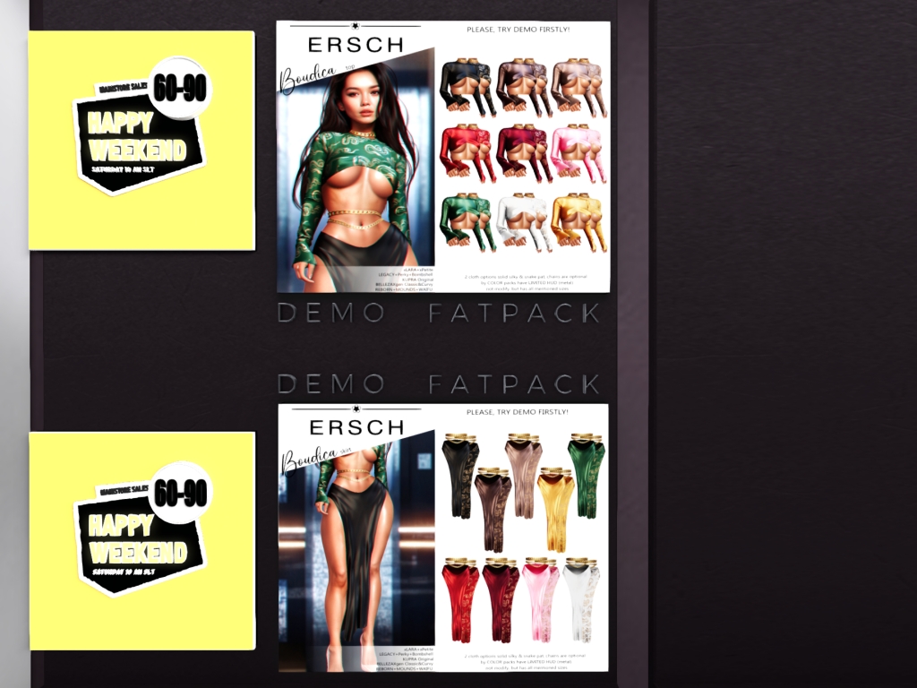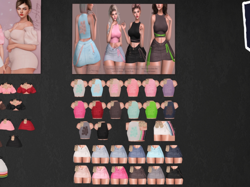 Featuring: Accessories, Animations/Poses/Props, Avatar Components, Avatar Enhancements, Builds, Clothing, Cosmetics/Nails, Footwear, Hairs, Home and Garden, HUDs, Interactive Games, Shapes, Skins, Tattoos, Vehicles