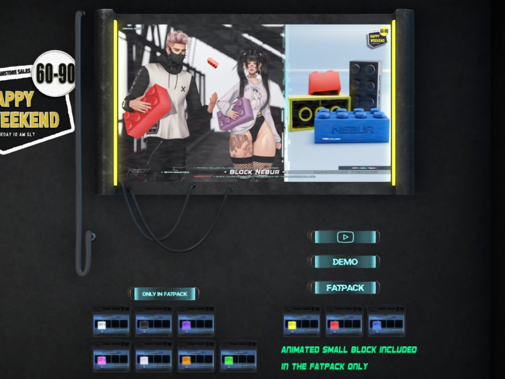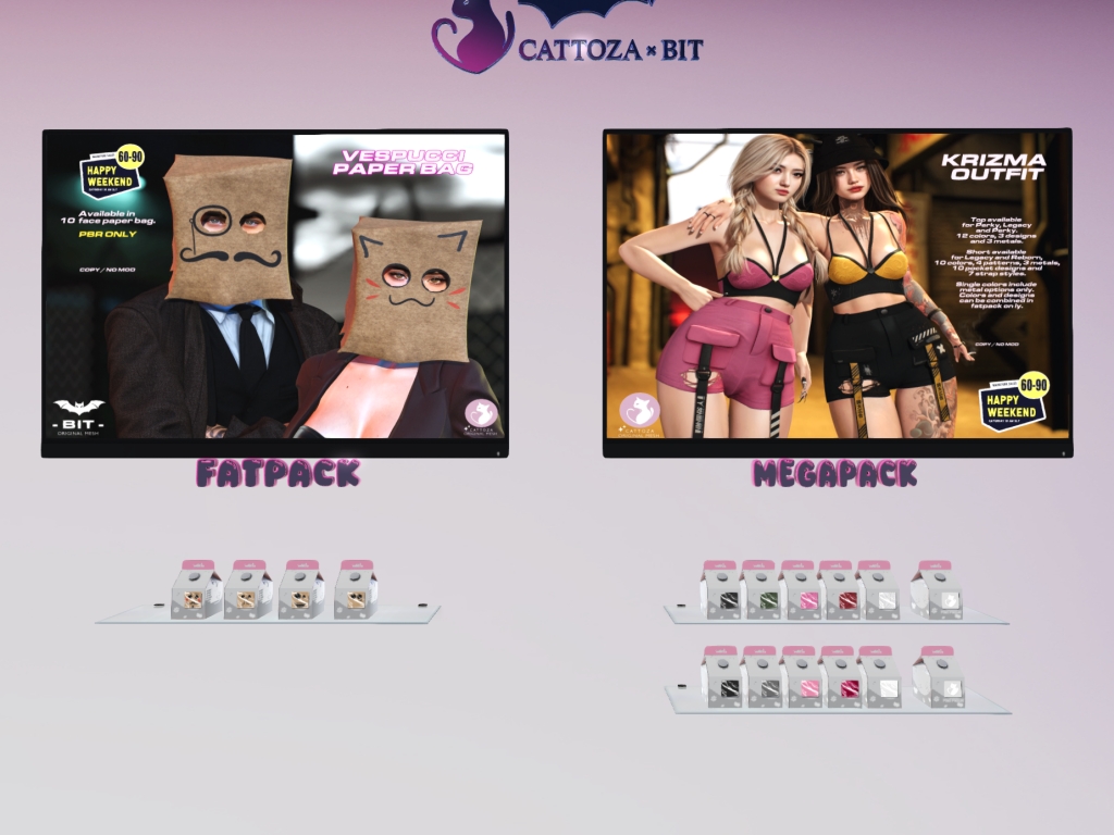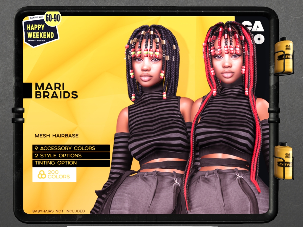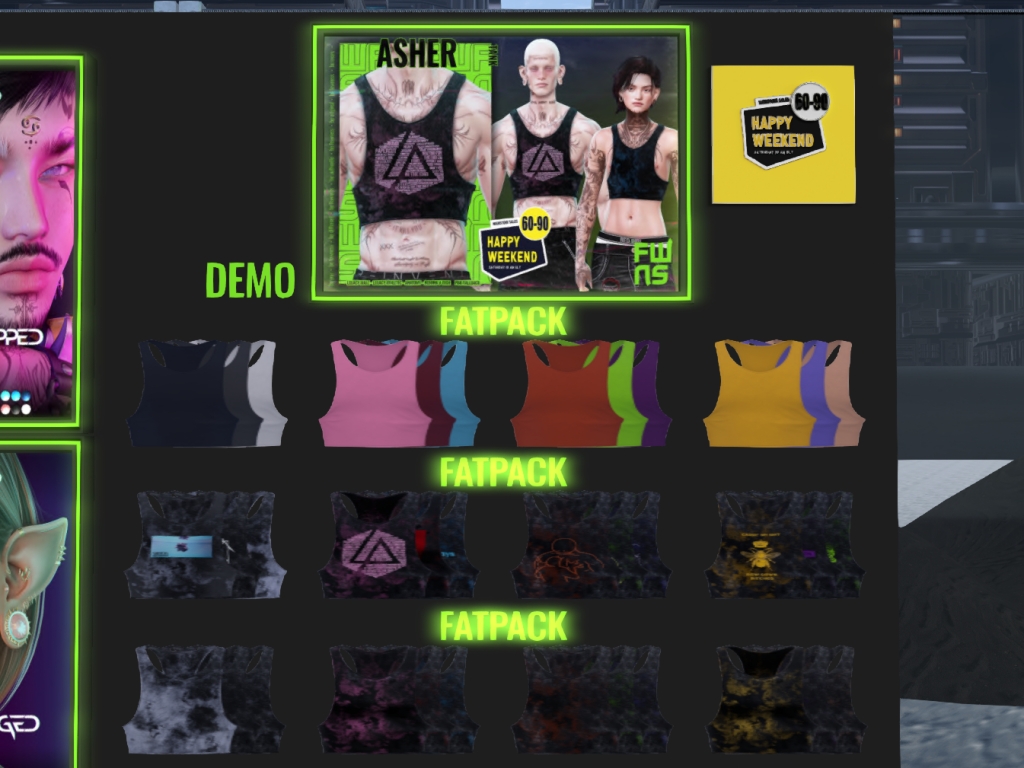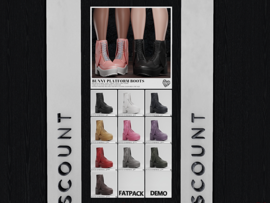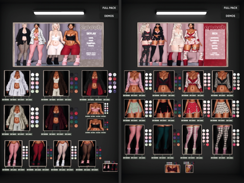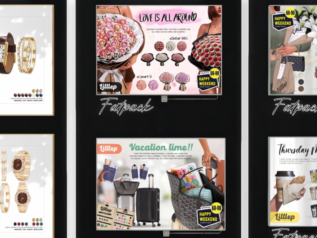 Featuring: Accessories, Animations/Poses/Props, Avatar Components, Avatar Enhancements, Builds, Clothing, Cosmetics/Nails, Footwear, Hairs, Home and Garden, HUDs, Interactive Games, Shapes, Skins, Tattoos, Vehicles