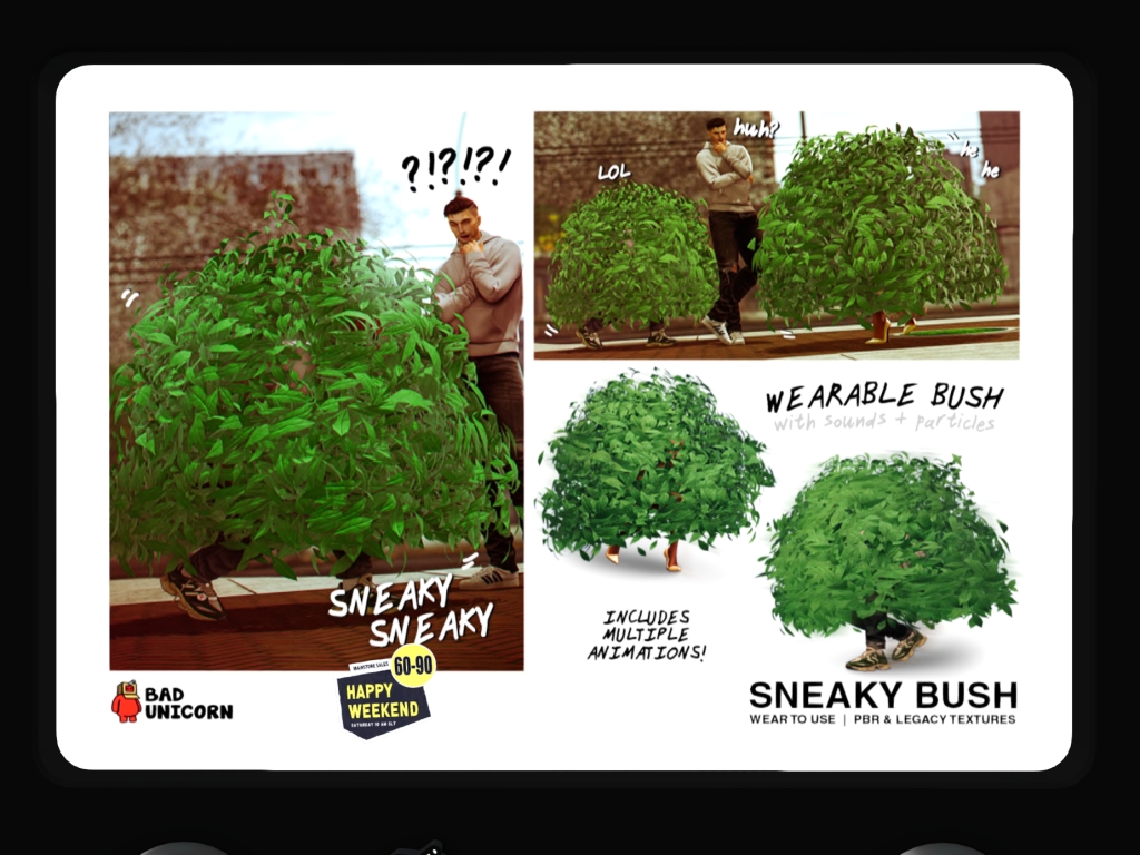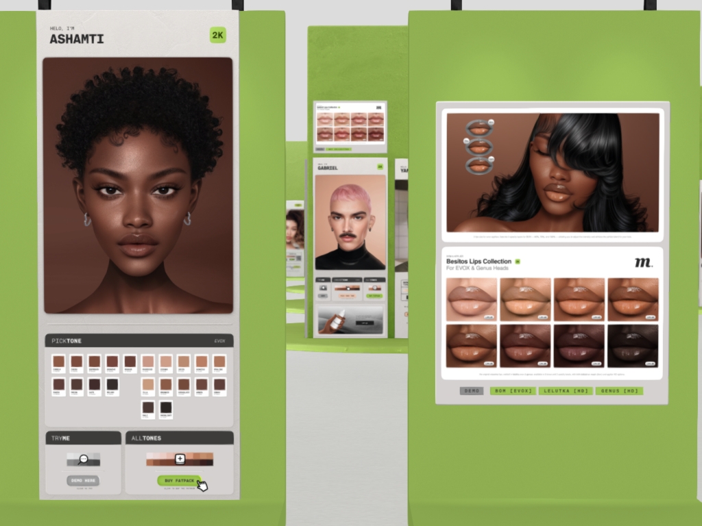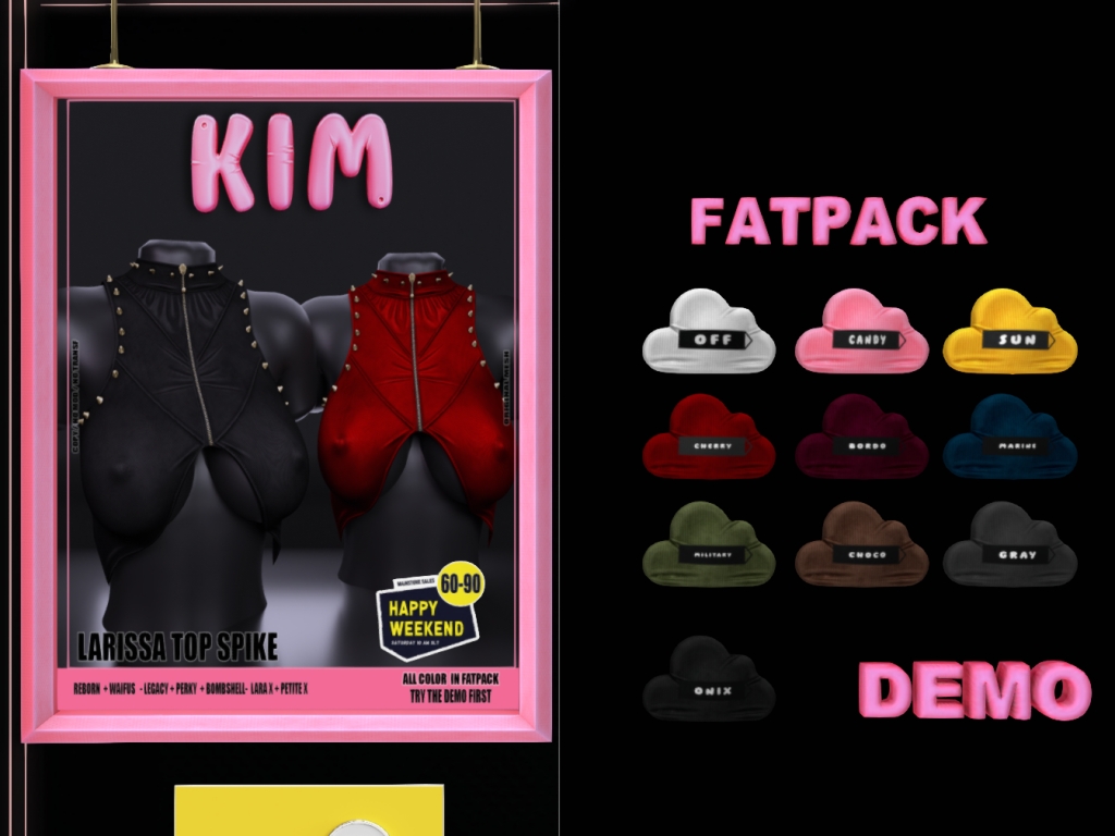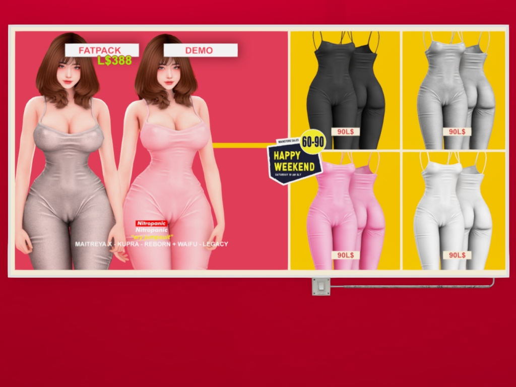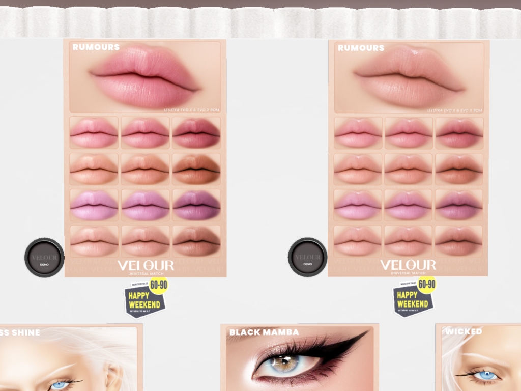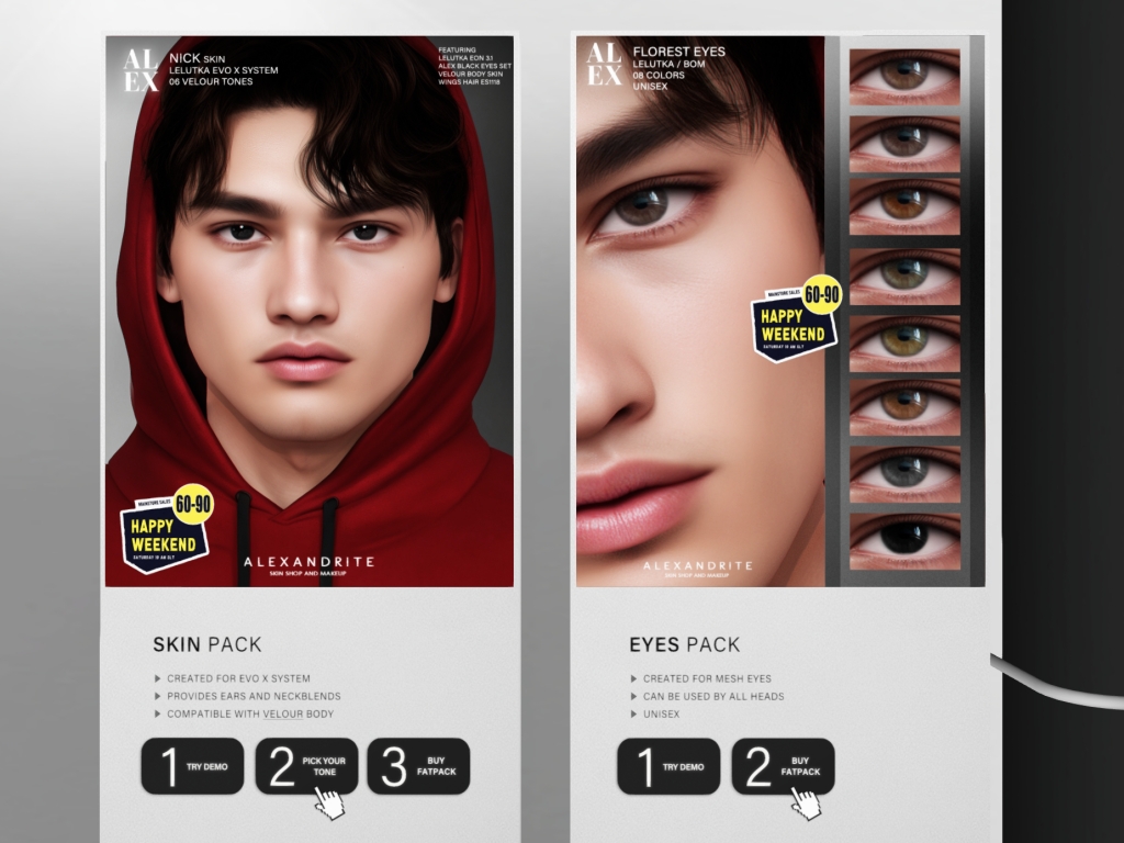 Featuring: Accessories, Animations/Poses/Props, Avatar Components, Avatar Enhancements, Builds, Clothing, Cosmetics/Nails, Footwear, Hairs, Home and Garden, HUDs, Interactive Games, Shapes, Skins, Tattoos, Vehicles