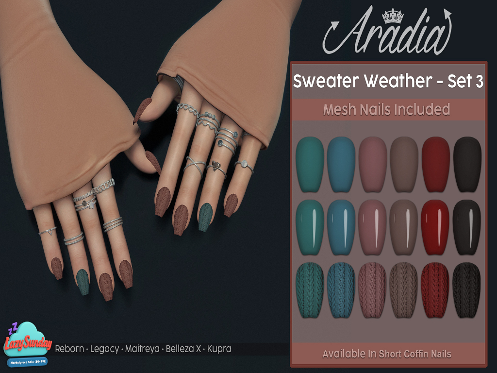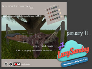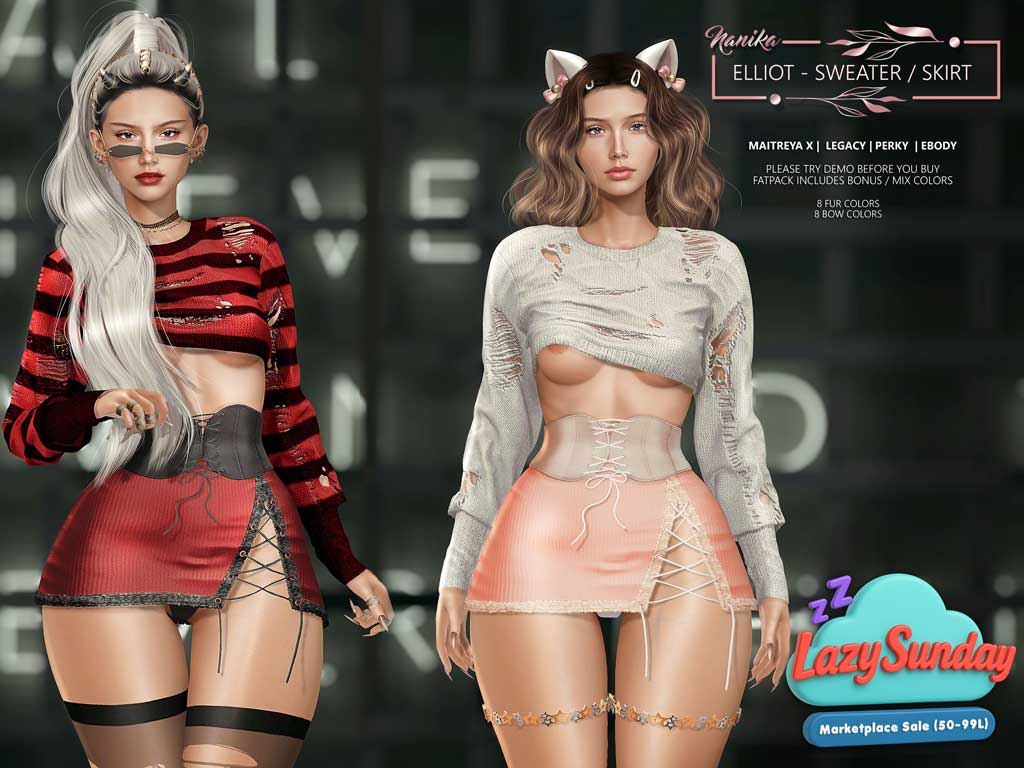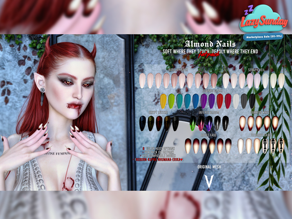 Featuring: Accessories, Animations/Poses/Props, Avatar Components, Avatar Enhancements, Builds, Clothing, Cosmetics/Nails, Footwear, Hairs, Home and Garden, Interactive Games, Shapes, Skins, Tattoos