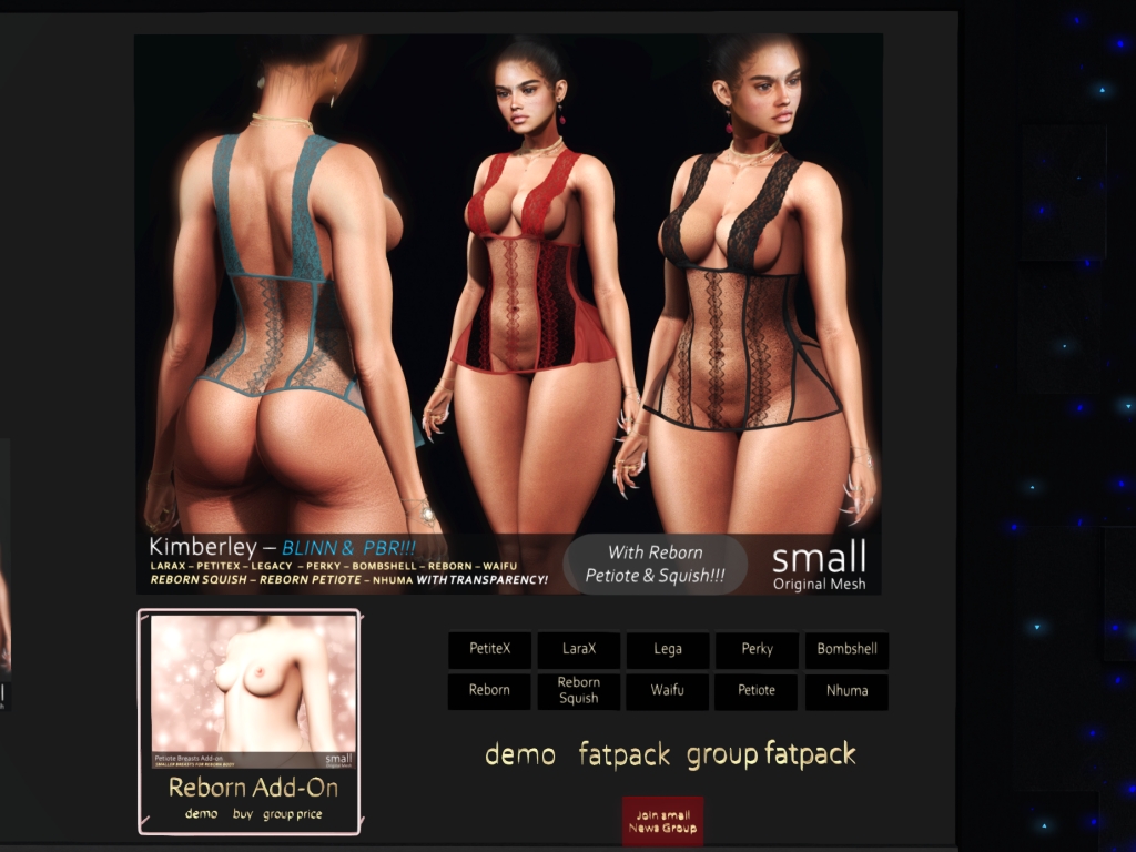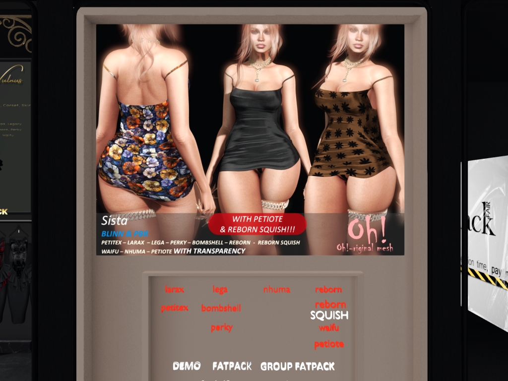 Featuring: Accessories, Animations/Poses/Props, Avatar Enhancements, Clothing, Cosmetics/Nails, Footwear, Shapes, Skins, Tattoos, Textures