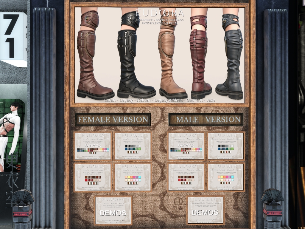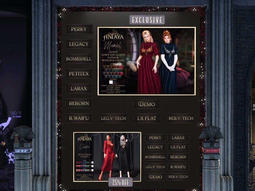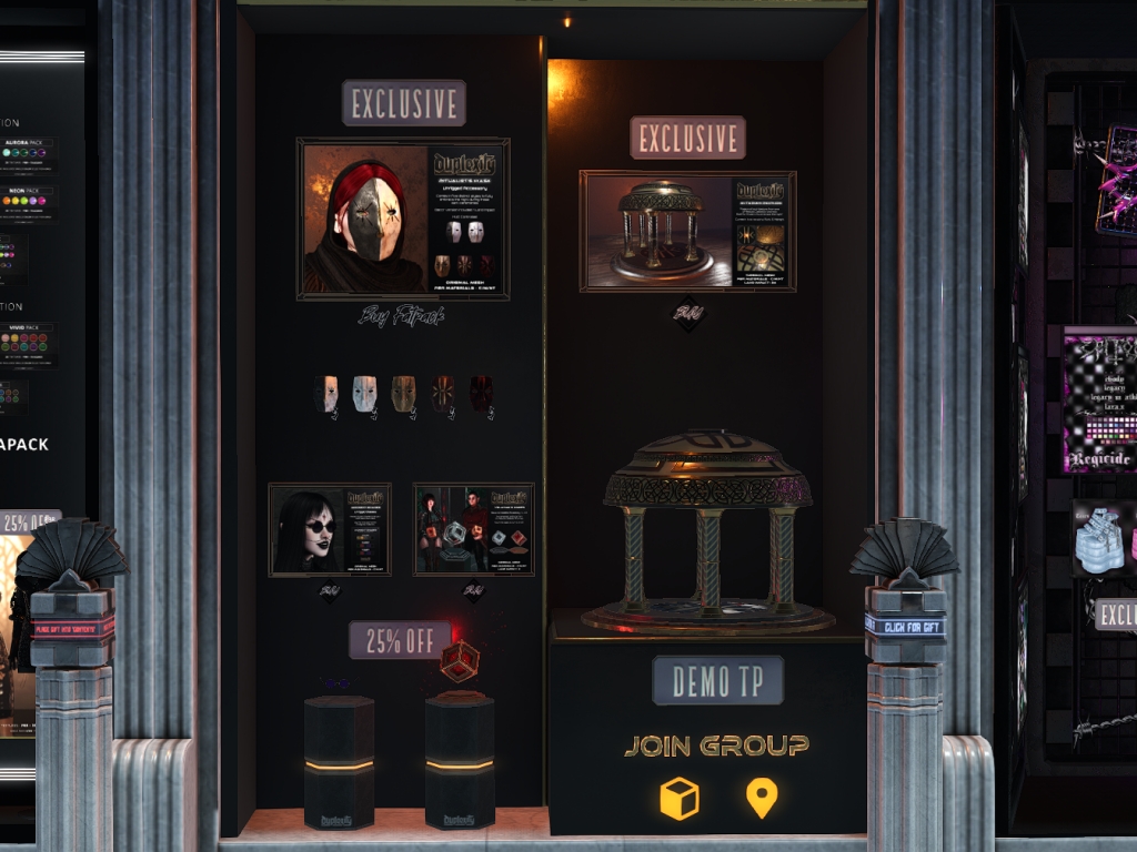 Featuring: Accessories, Animals/Pets/Companions, Animations/Poses/Props, Avatar Components, Avatar Enhancements, Builds, Clothing, Cosmetics/Nails, Footwear, Hairs, Home and Garden, Skins, Tattoos