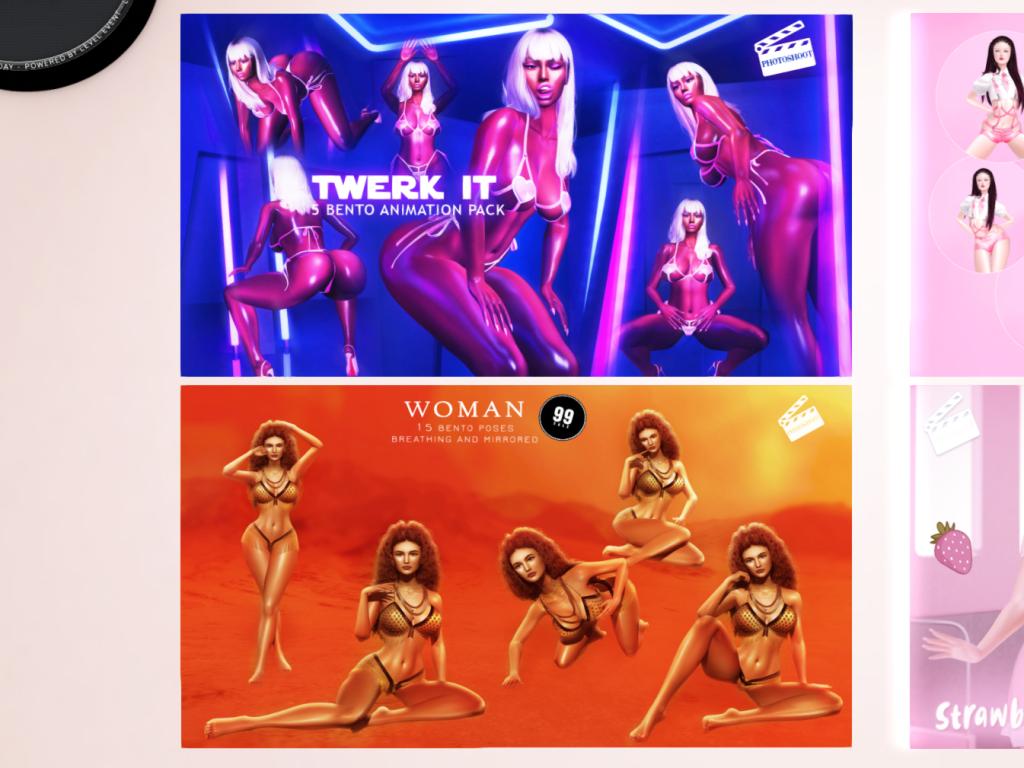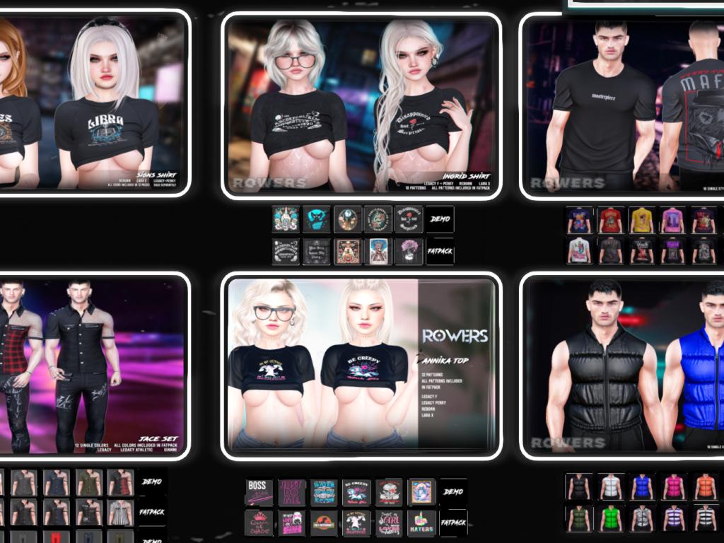 Featuring: Accessories, Animations/Poses/Props, Avatar Components, Avatar Enhancements, Clothing, Cosmetics/Nails, Footwear, Home and Garden, Skins, Tattoos, Vehicles