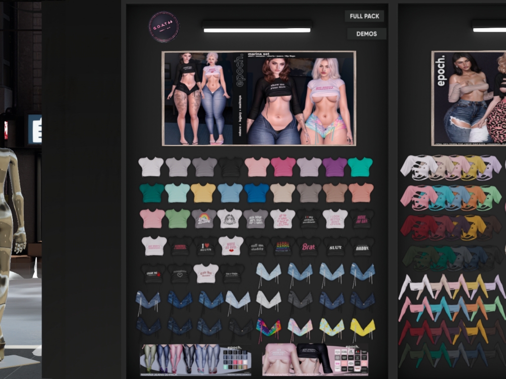 Featuring: Accessories, Animations/Poses/Props, Avatar Components, Avatar Enhancements, Builds, Clothing, Cosmetics/Nails, Developer Tools, Footwear, Home and Garden, Shapes, Tattoos