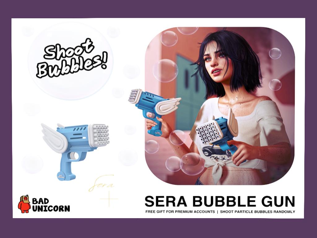 - Fun Accessory – Bad Unicorn – A wearable Sera Bubble Gun that shoots particle bubbles randomly. Left & right hand options.