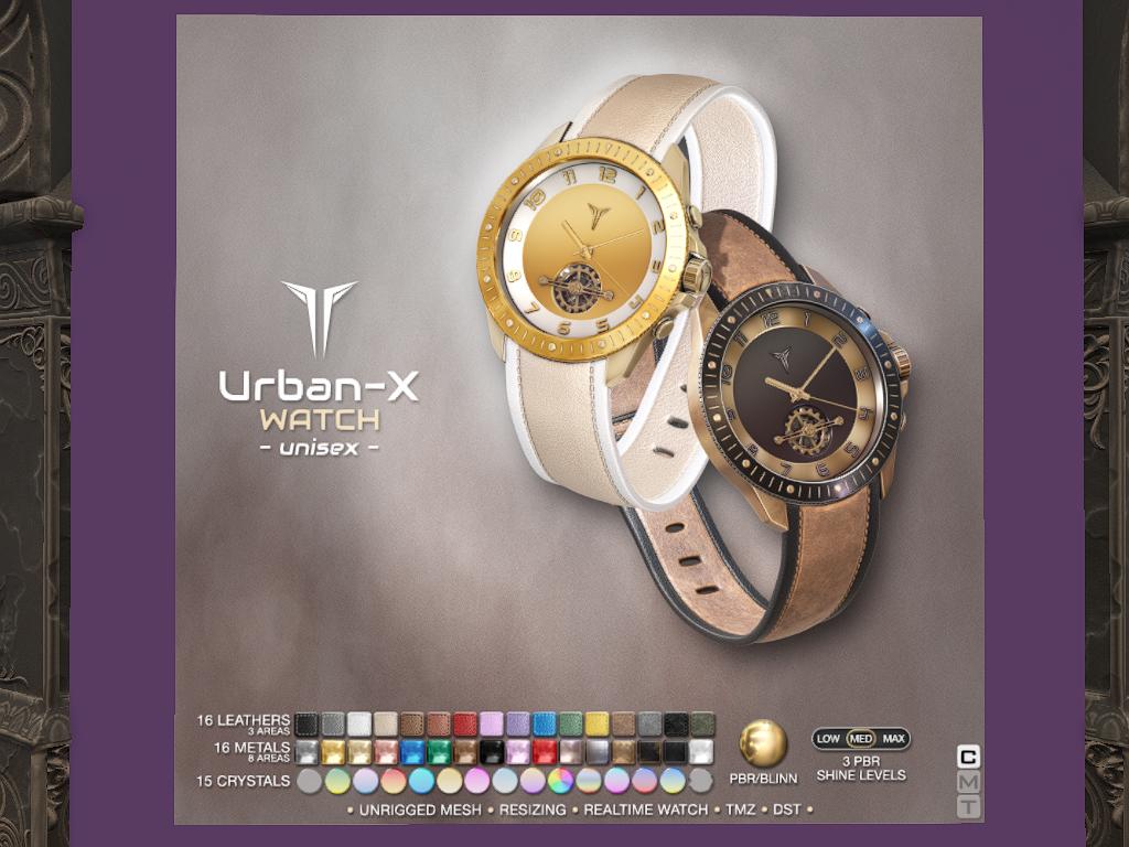 - Unisex Accessories – RealEvil Industries – Stunning Unisex Urban X Watch in legacy and PBR textures. Unrigged with 16 metal textures, 16 leather textures and 15 crystal textures. Shows the real time and is resizable.
