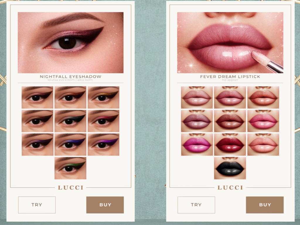 Featuring: Accessories, Animations/Poses/Props, Avatar Components, Avatar Enhancements, Builds, Clothing, Cosmetics/Nails, Hairs, Home and Garden, Shapes, Skins, Tattoos