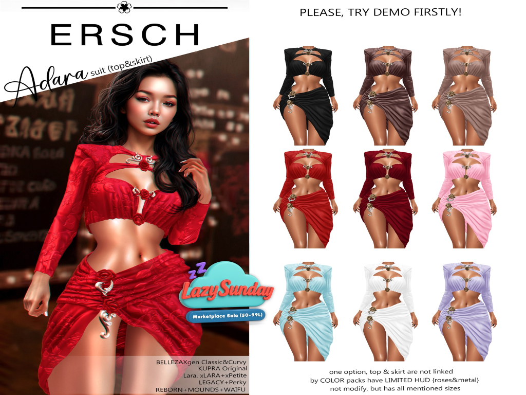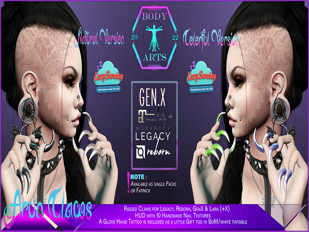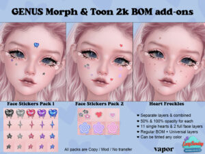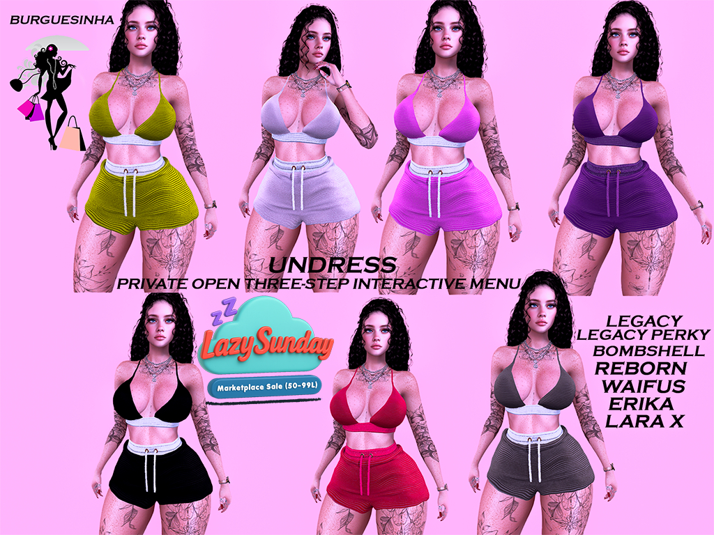 Featuring: Accessories, Animations/Poses/Props, Avatar Components, Avatar Enhancements, Builds, Clothing, Cosmetics/Nails, Footwear, Hairs, Home and Garden, Shapes, Skins, Tattoos, Tools, Vehicles