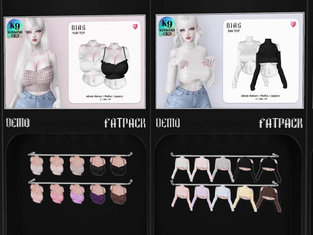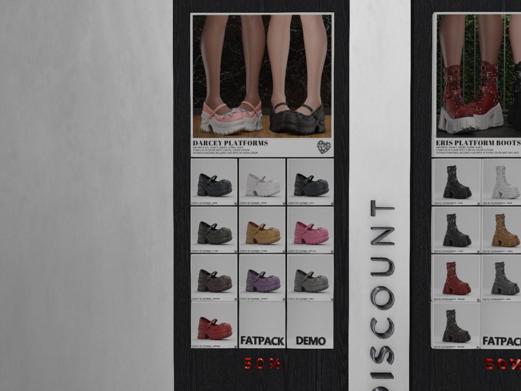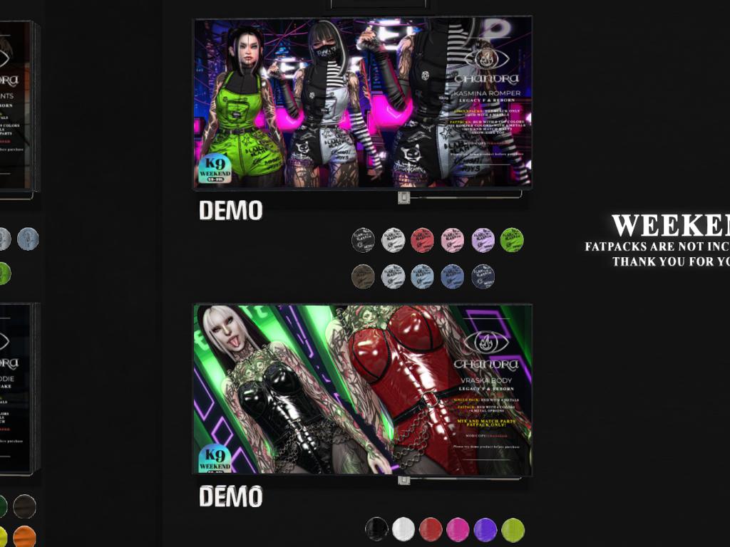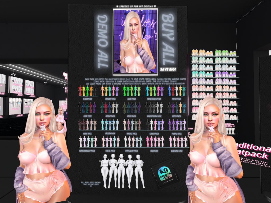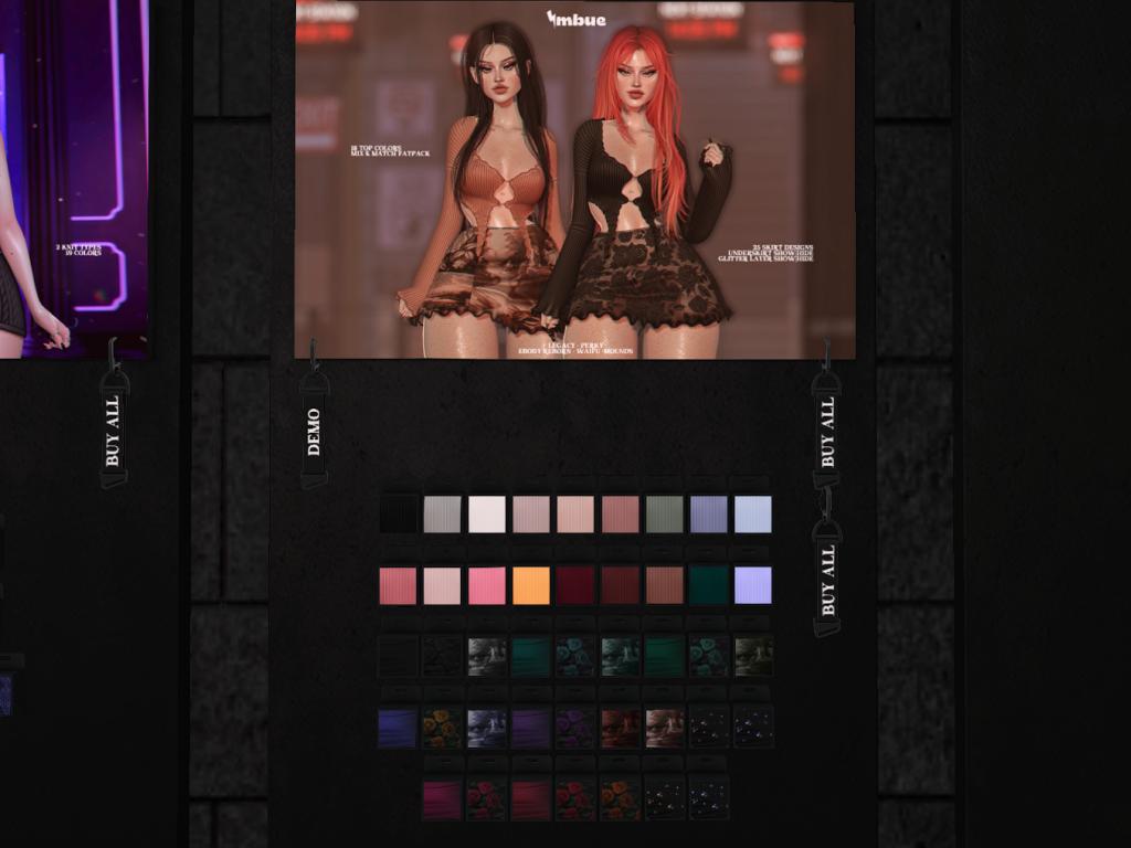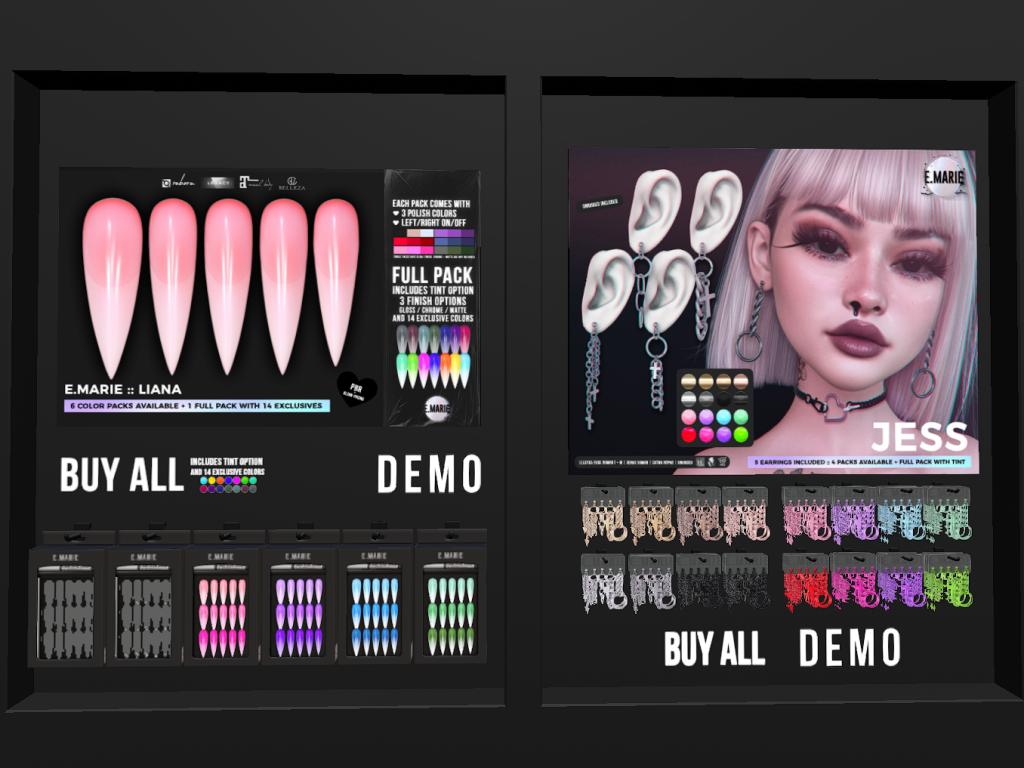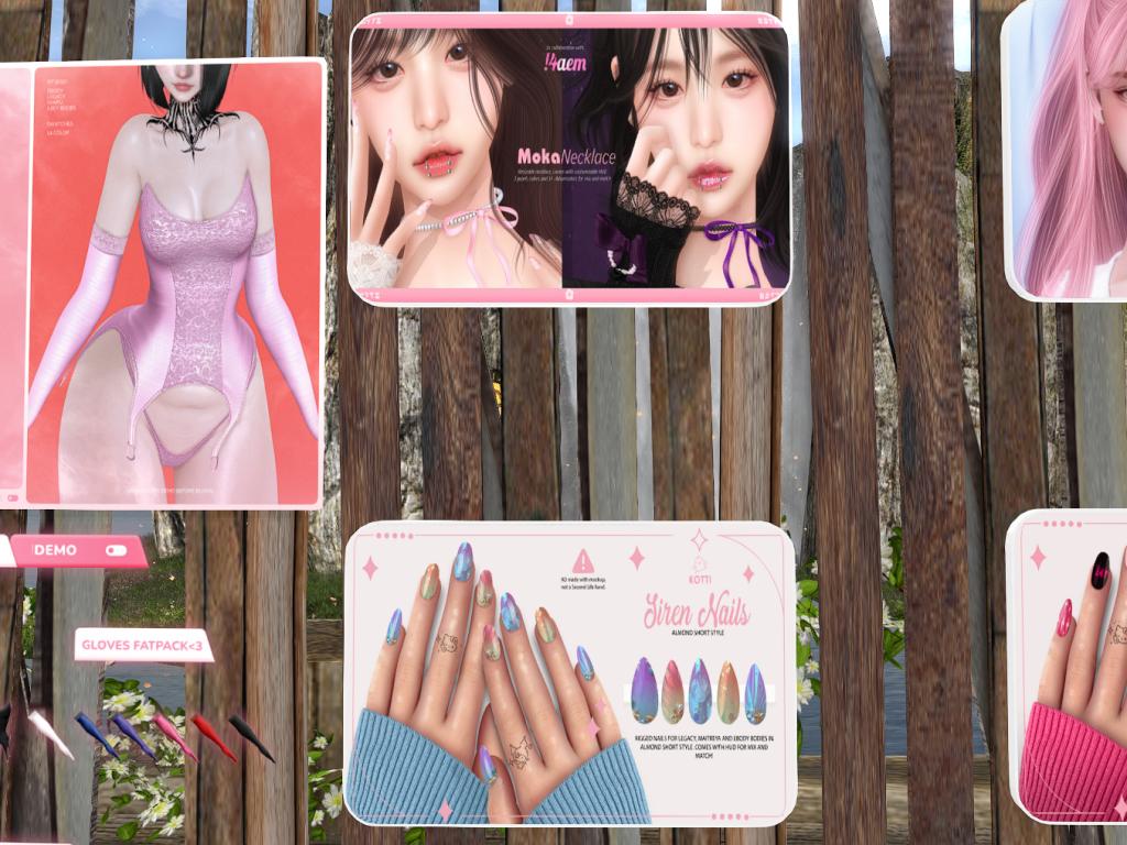 Featuring: Accessories, Animations/Poses/Props, Avatar Components, Avatar Enhancements, Clothing, Cosmetics/Nails, Footwear, Home and Garden, HUDs, Skins, Tattoos, Vehicles