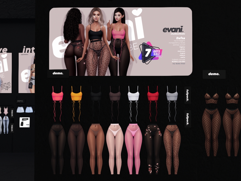 Featuring: Accessories, Animations/Poses/Props, Avatar Enhancements, Clothing, Cosmetics/Nails, Footwear, Hairs, Home and Garden, HUDs, Tattoos, Textures