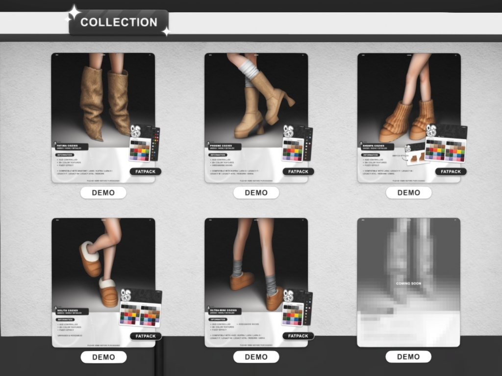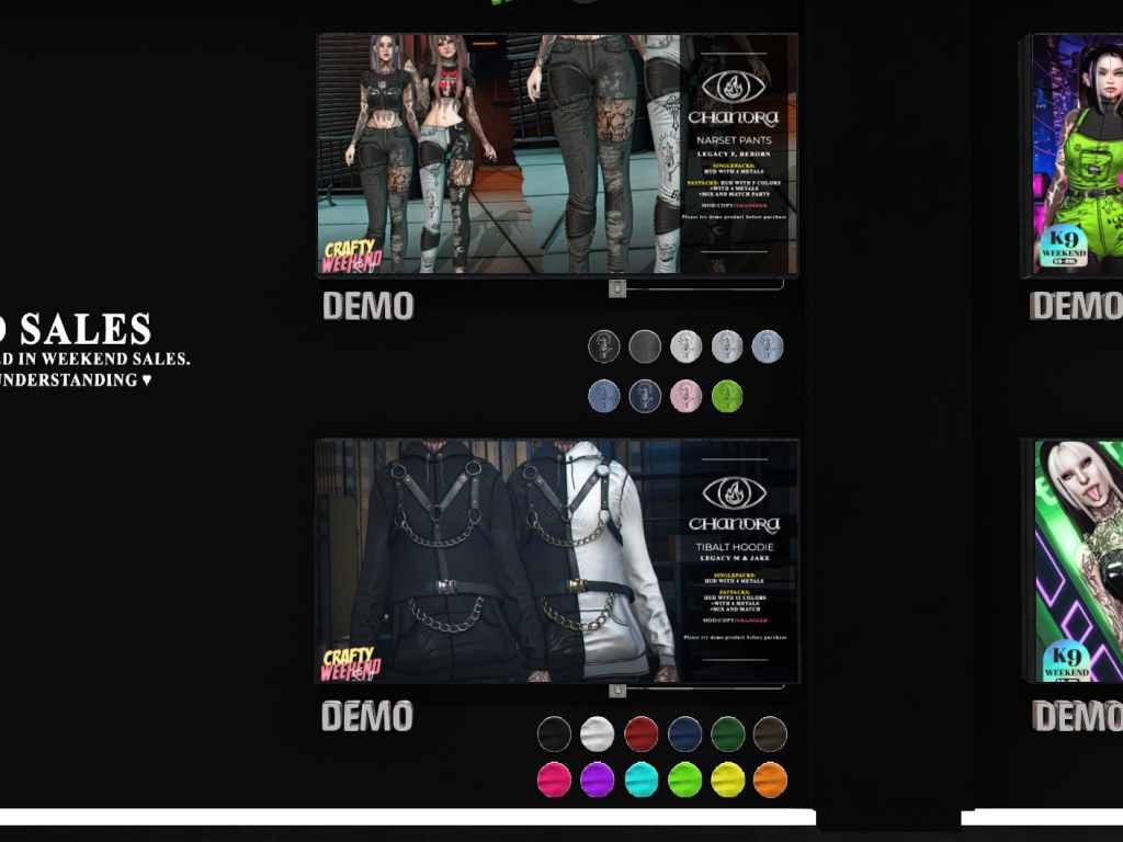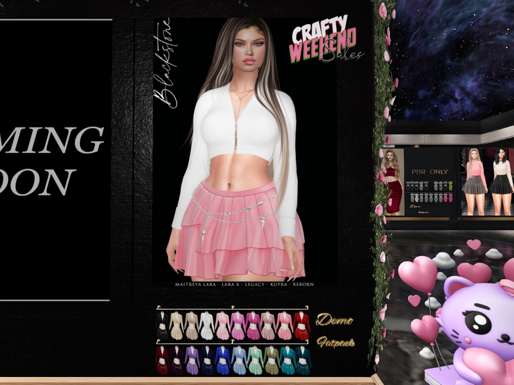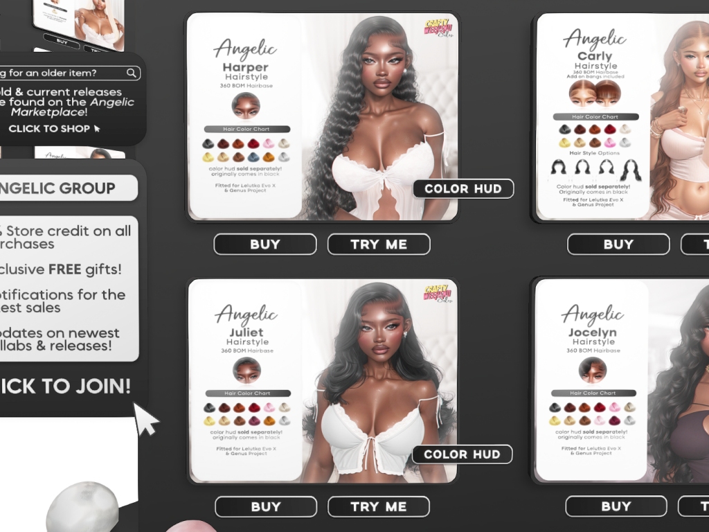 Featuring: Accessories, Animations/Poses/Props, Avatar Components, Avatar Enhancements, Builds, Clothing, Cosmetics/Nails, Footwear, Hairs, Home and Garden, Skins, Tattoos, Vehicles