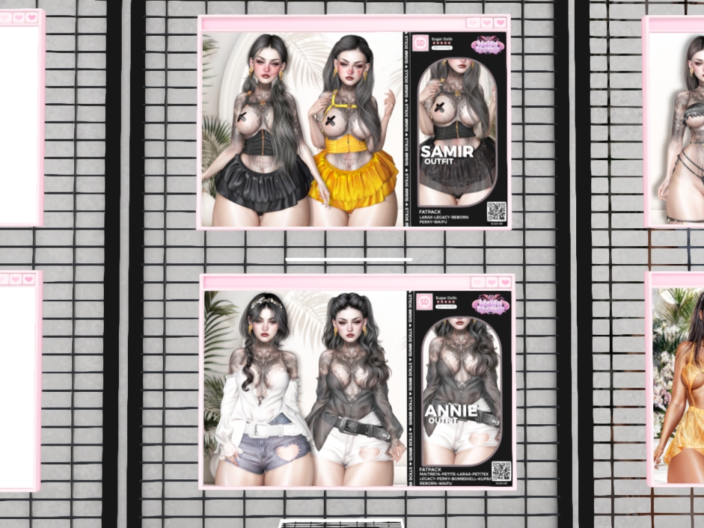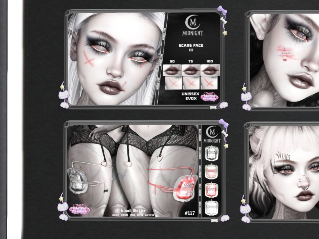Featuring: Accessories, Animations/Poses/Props, Avatar Enhancements, Builds, Clothing, Cosmetics/Nails, Footwear, Home and Garden, Shapes, Skins, Tattoos