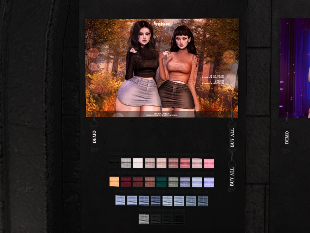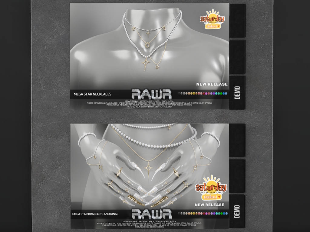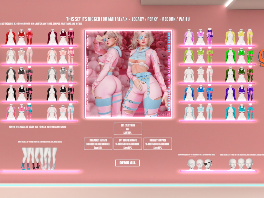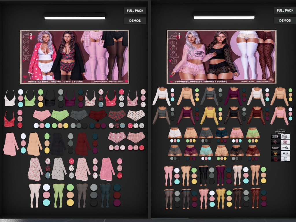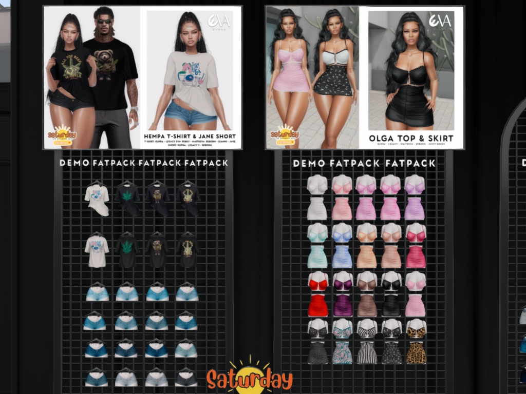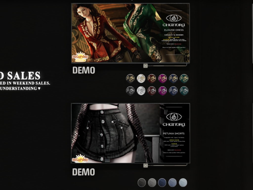 Featuring: Accessories, Animations/Poses/Props, Avatar Components, Avatar Enhancements, Builds, Clothing, Cosmetics/Nails, Hairs, Home and Garden, Skins, Tattoos, Vehicles