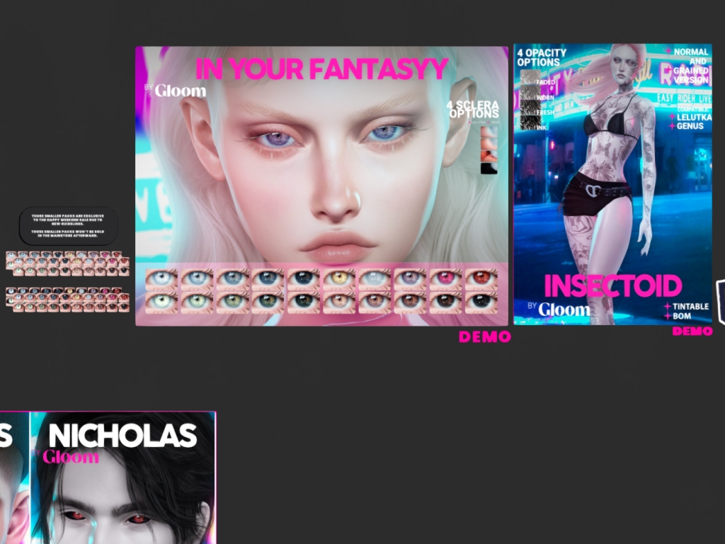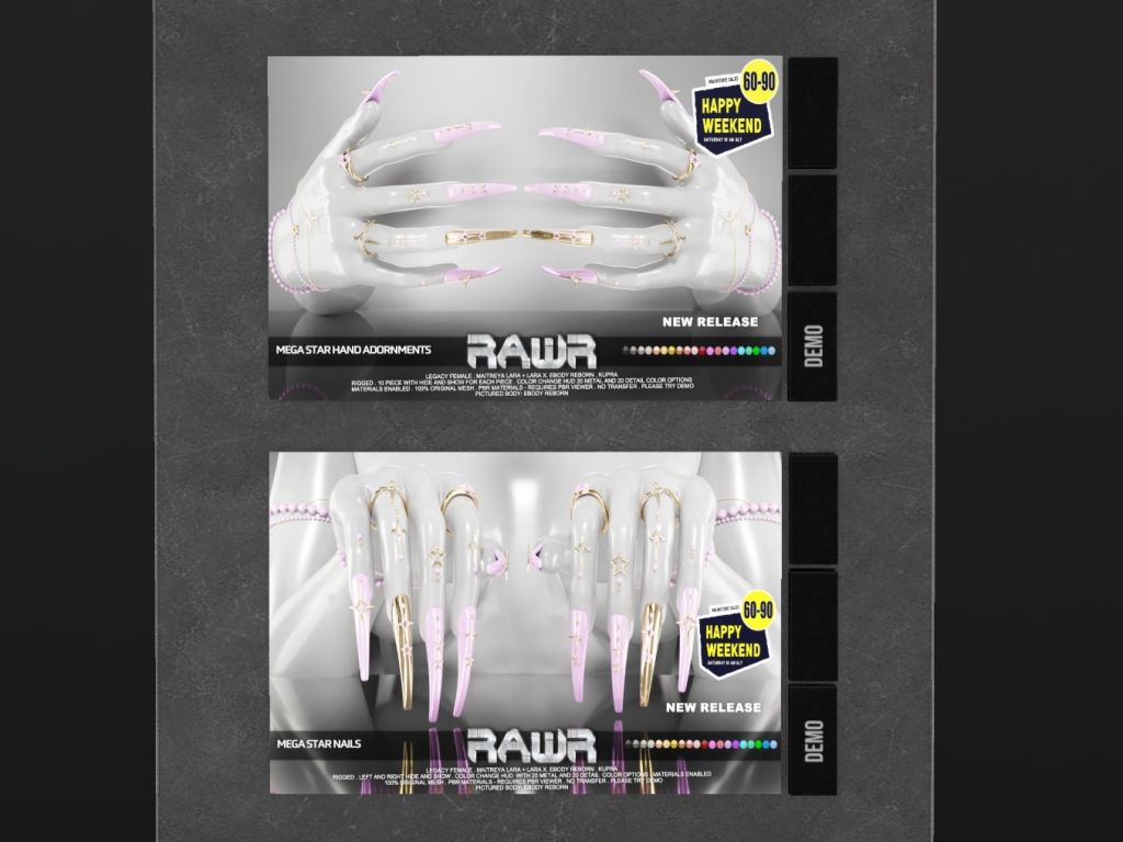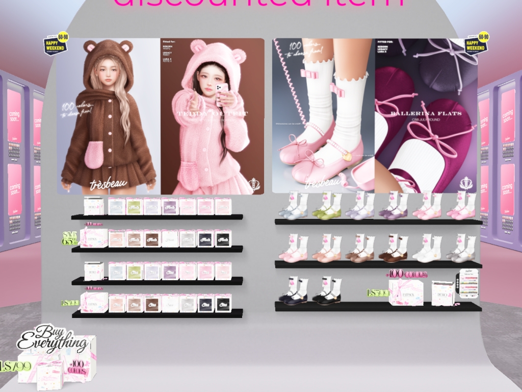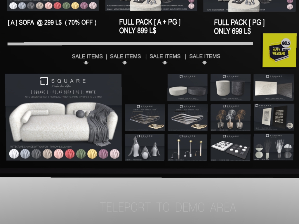 Featuring: Accessories, Animations/Poses/Props, Avatar Components, Builds, Clothing, Cosmetics/Nails, Footwear, Hairs, Home and Garden, Shapes, Skins, Tattoos, Vehicles