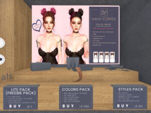Featuring: Accessories, Animations/Poses/Props, Avatar Components, Builds, Clothing, Cosmetics/Nails, Footwear, Hairs, Home and Garden