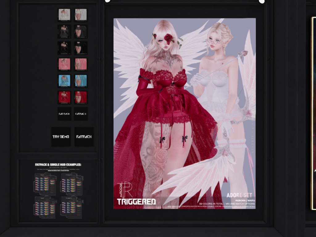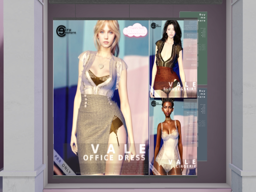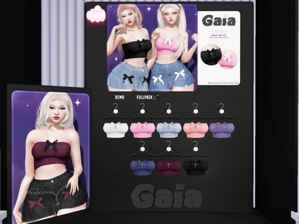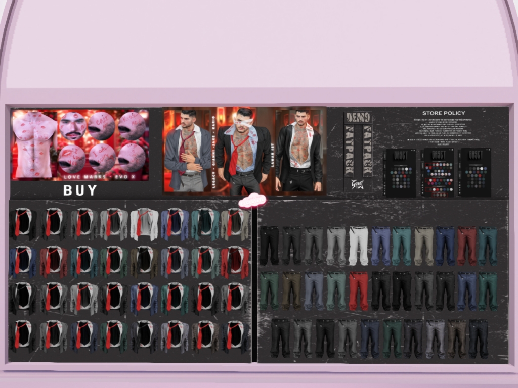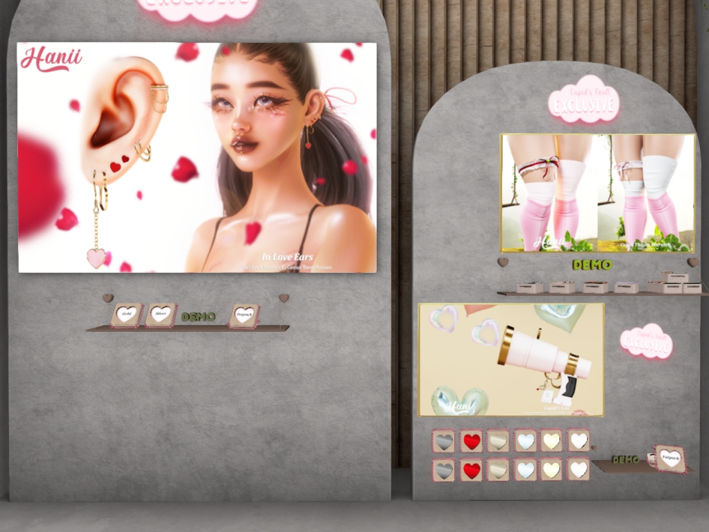 Featuring: Accessories, Animations/Poses/Props, Avatar Components, Avatar Enhancements, Builds, Clothing, Cosmetics/Nails, Footwear, Hairs, Home and Garden, HUDs, Interactive Games, Shapes, Skins, Tattoos