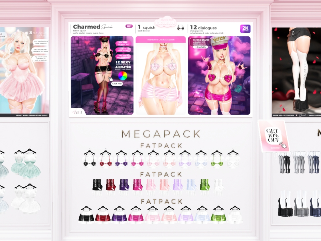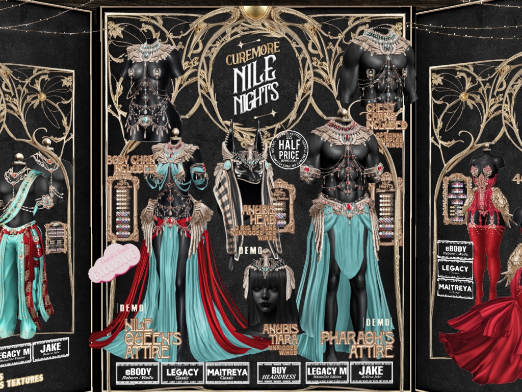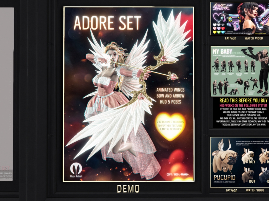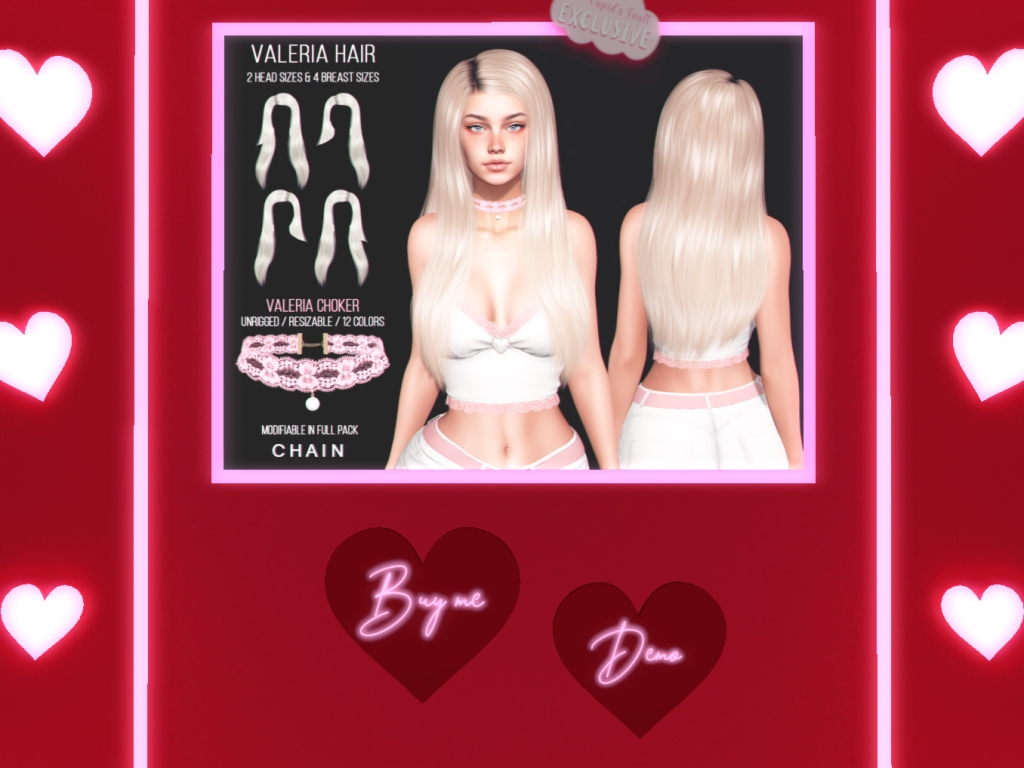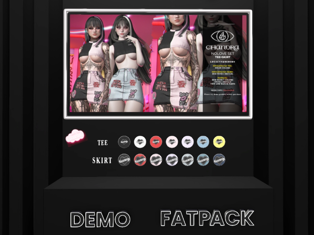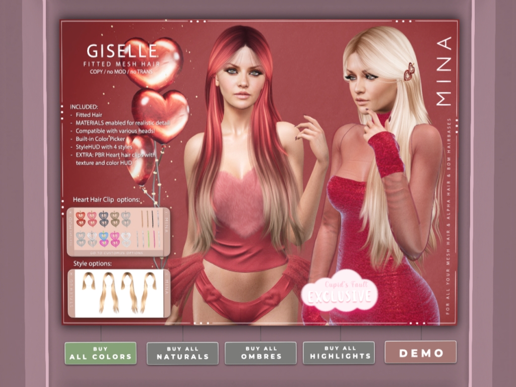 Featuring: Accessories, Animations/Poses/Props, Avatar Components, Avatar Enhancements, Builds, Clothing, Cosmetics/Nails, Footwear, Hairs, Home and Garden, HUDs, Interactive Games, Shapes, Skins, Tattoos