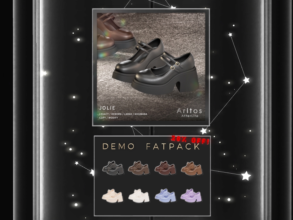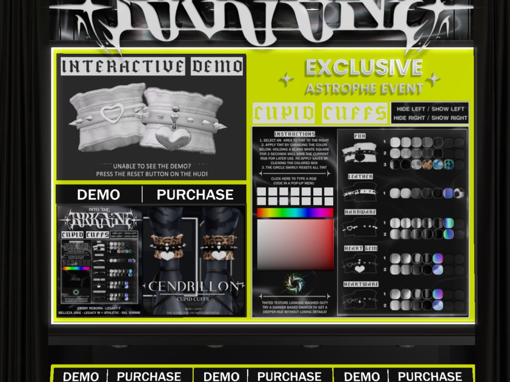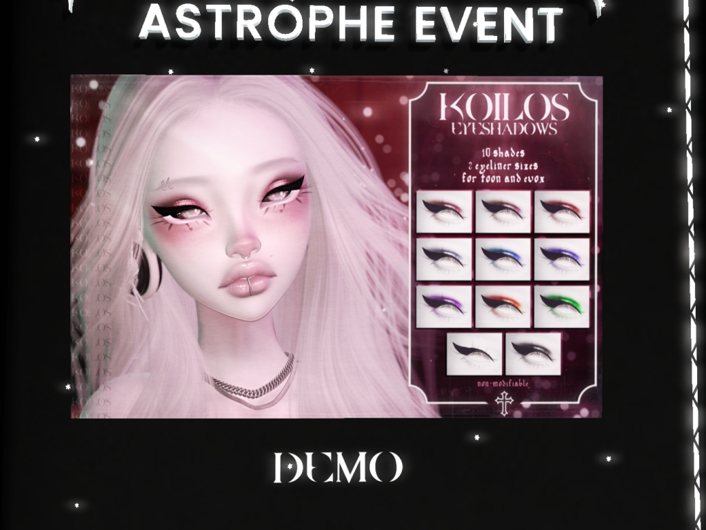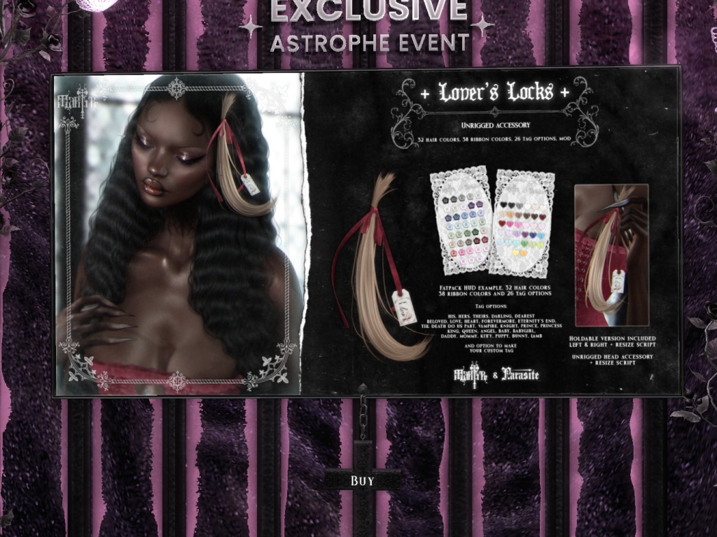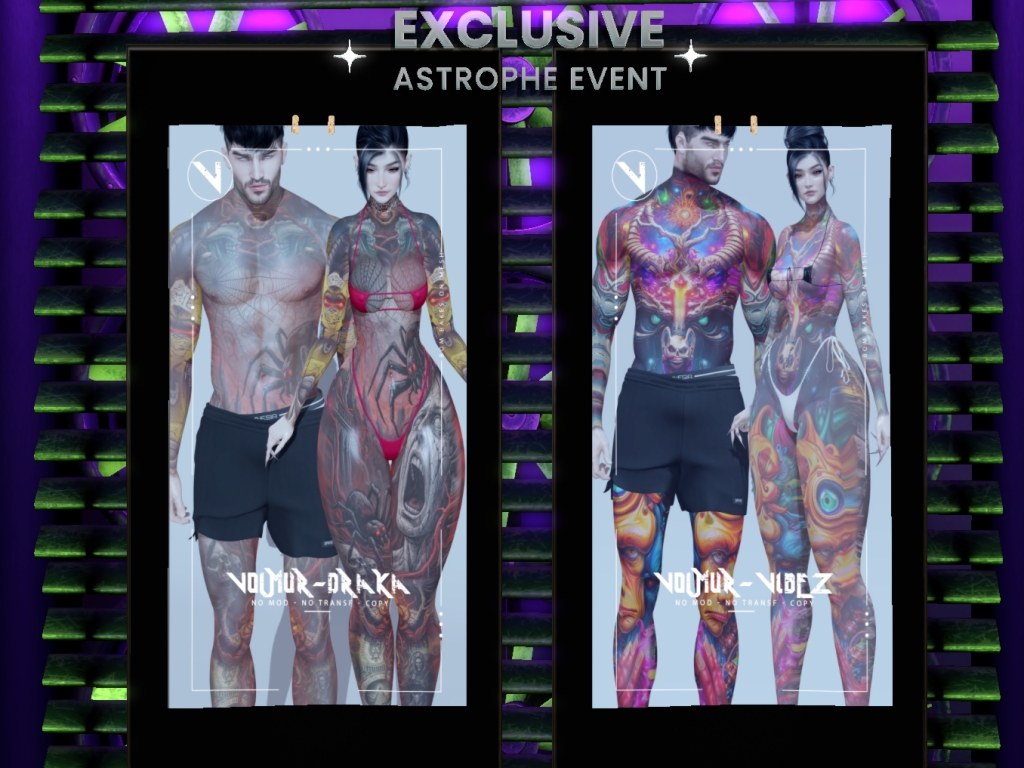 Featuring: Accessories, Animals/Pets/Companions, Animations/Poses/Props, Avatar Components, Avatar Enhancements, Builds, Clothing, Cosmetics/Nails, Footwear, Home and Garden, Shapes, Skins, Tattoos