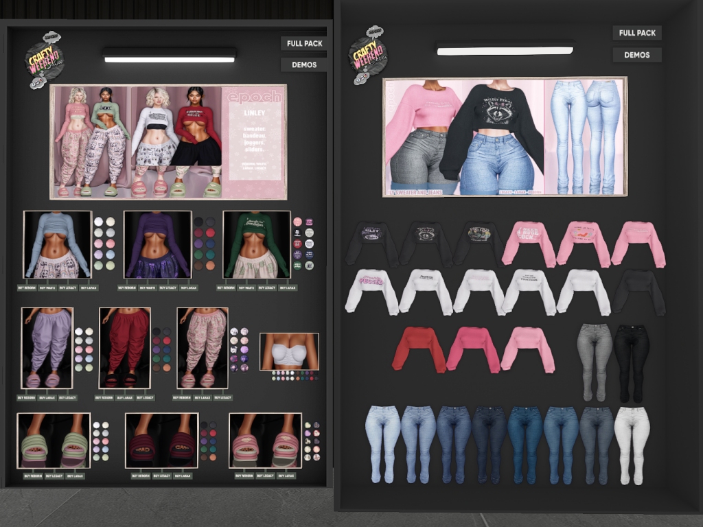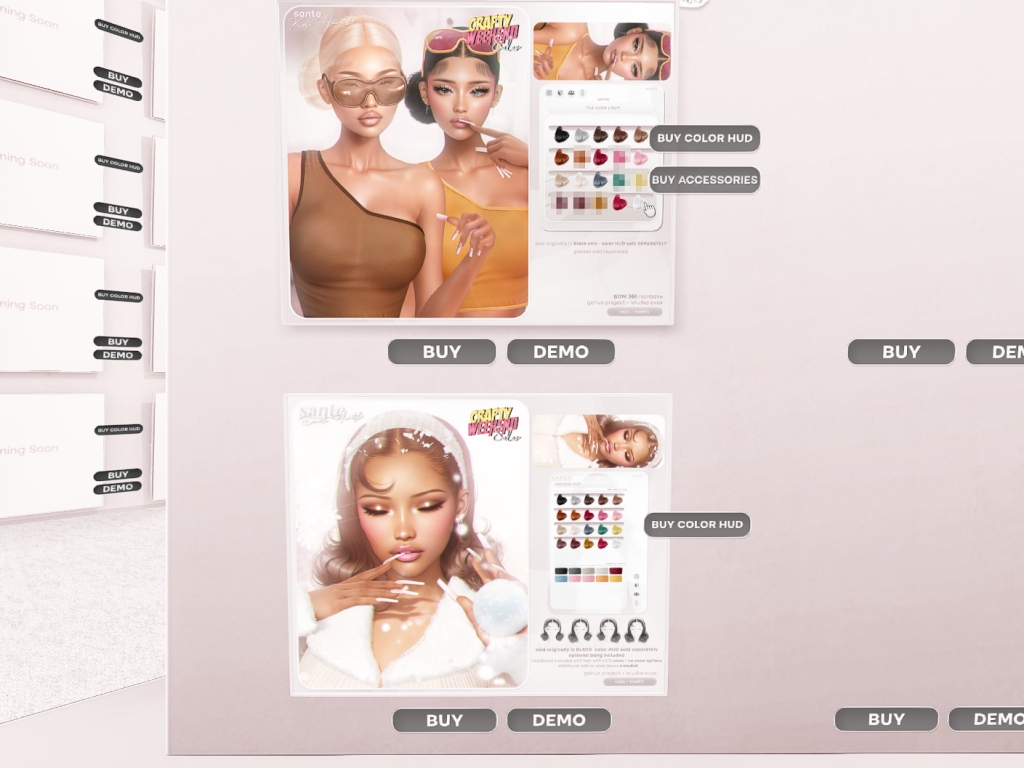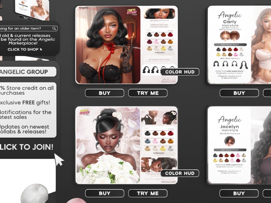 Featuring: Accessories, Animations/Poses/Props, Avatar Components, Avatar Enhancements, Builds, Clothing, Cosmetics/Nails, Footwear, Hairs, Home and Garden, Skins, Tattoos, Vehicles