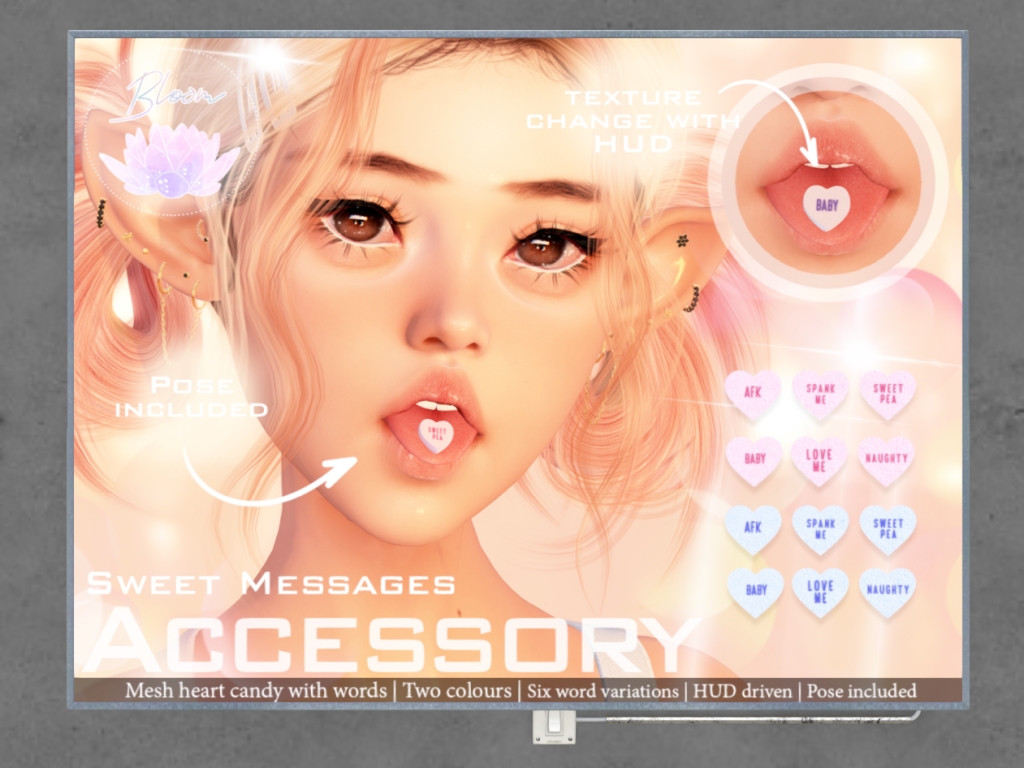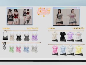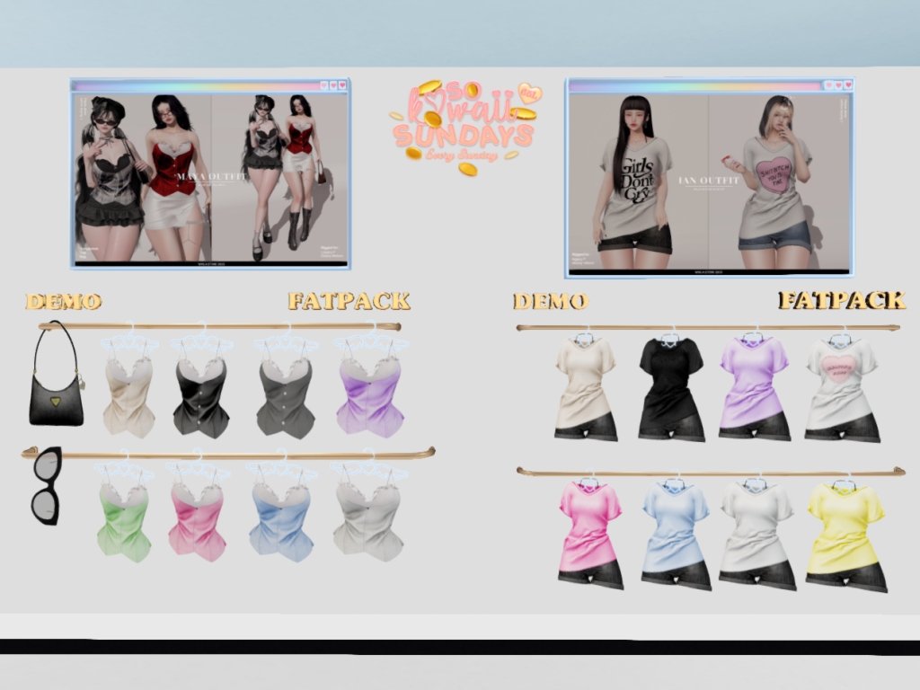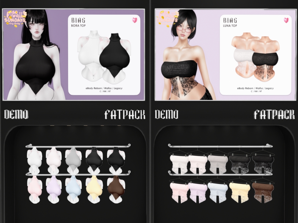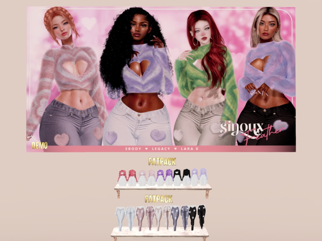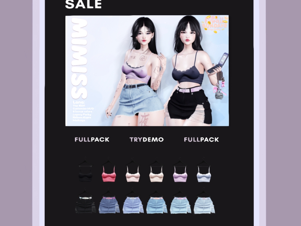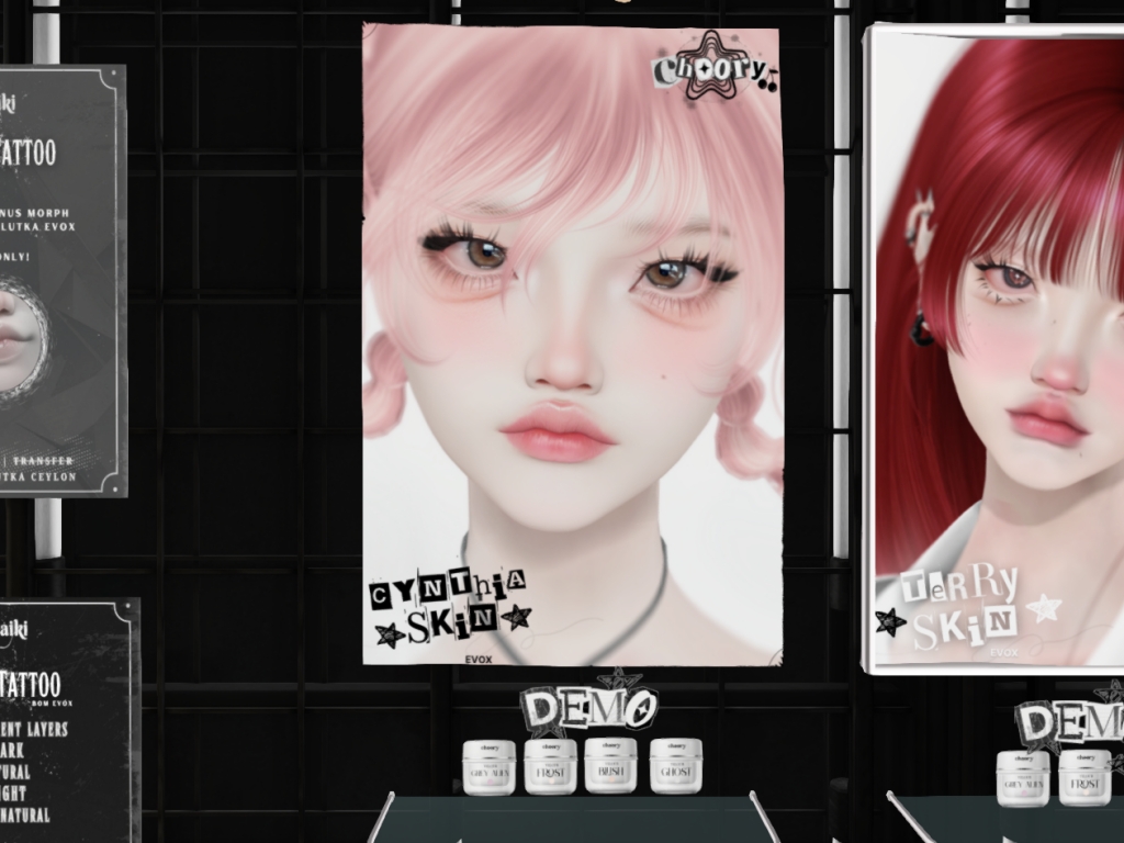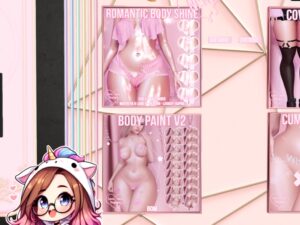 Featuring: Accessories, Animations/Poses/Props, Appliers/Cosmetics/Nails, Avatar Components, Avatar Enhancements, Builds, Clothing, Footwear, Hairs, Home and Garden, Shapes, Skins, Tattoos