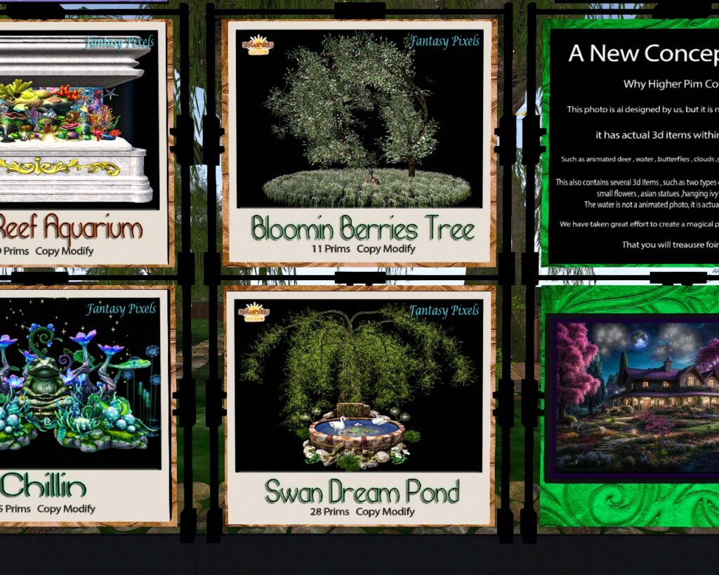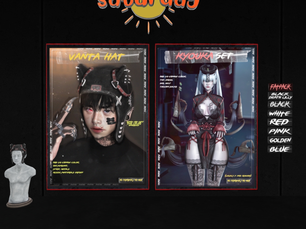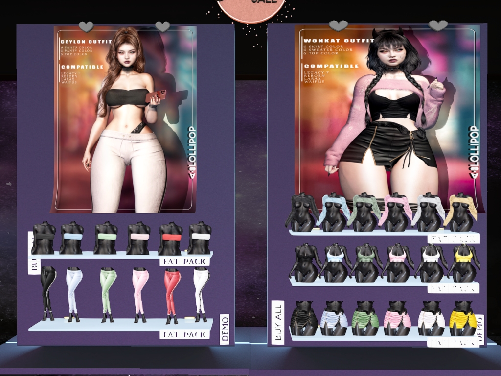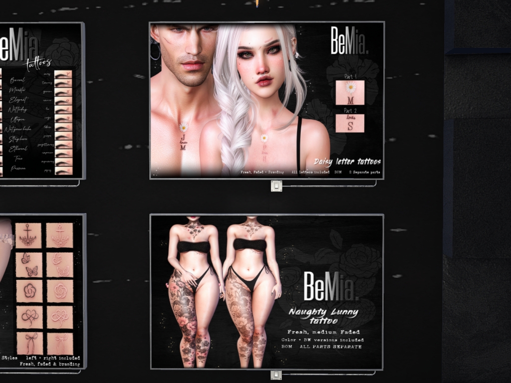 Featuring: Accessories, Animations/Poses/Props, Avatar Components, Avatar Enhancements, Builds, Clothing, Cosmetics/Nails, Hairs, Home and Garden, Skins, Tattoos, Vehicles